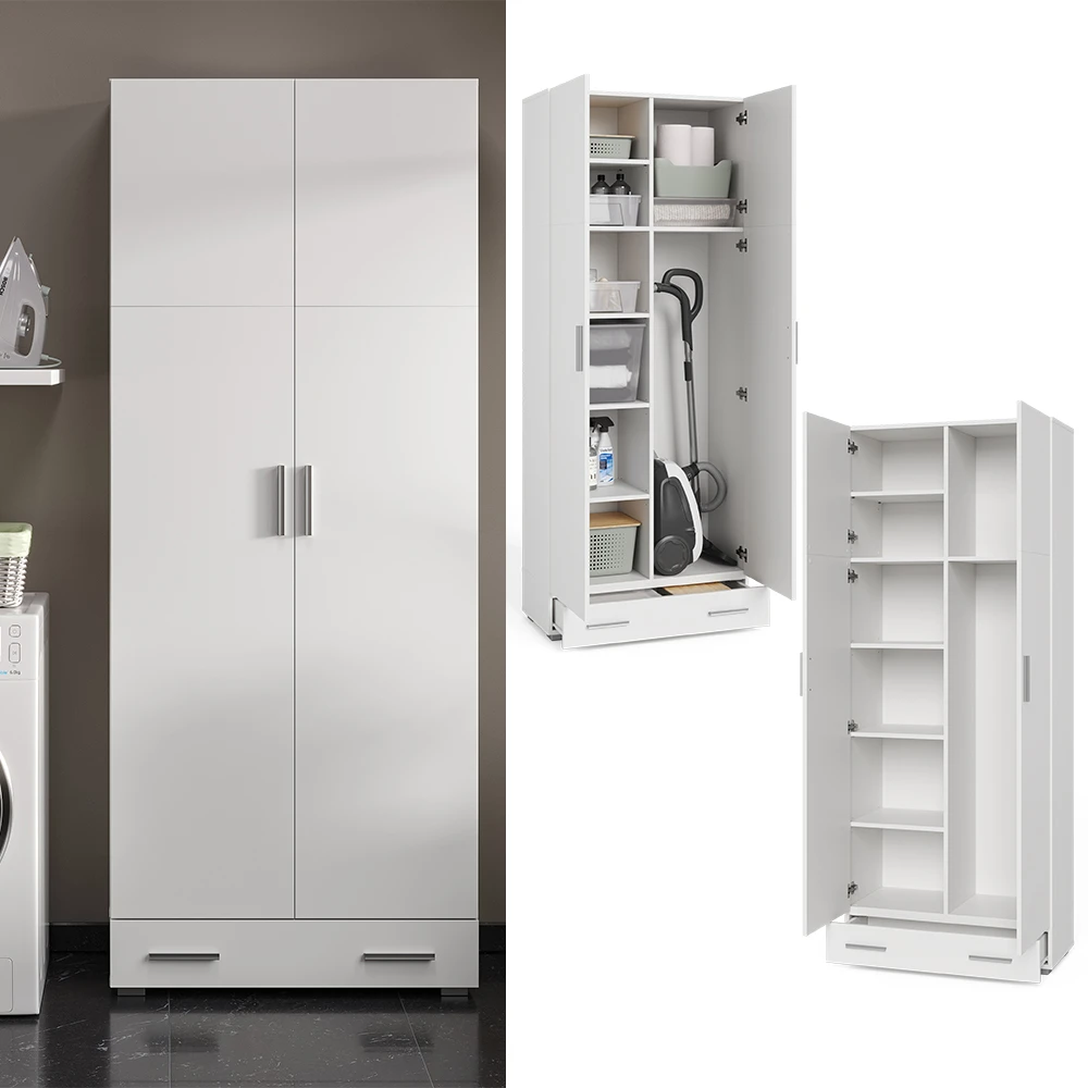 - MATERIAL: Der Mehrzweckschrank besteht aus pflegeleichter Spanplatte 16 mm, mit einer Melaminharzbeschichtung.