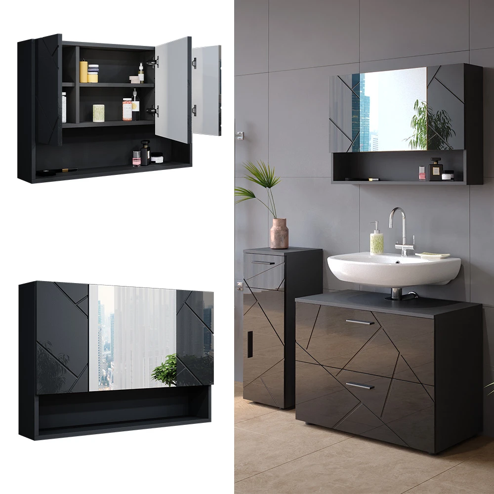 Der Bad Spiegelschrank Irma ist ein Muss für jedes Badezimmer. Mit seinen vielseitigen Funktionen ist er der perfekte Begleiter für Ihre täglichen Pflege-Rituale. Mit einem geräumigen Schrankbereich und einer großzügigen Ablagefläche bietet er genügend Platz für Ihre Bad-Accessoires und Utensilien. Ob beim Schminken, Rasieren oder Zähneputzen – der Badezimmerspiegel Schrank überzeugt durch seine klare Spiegeloberfläche und das praktische Design. Entspannen Sie sich während der morgendlichen Routine und fühlen Sie sich gut vorbereitet auf den Tag. Der Irma Spiegelschrank ist ein Blickfang in Ihrem Bad und vermittelt einen Hauch von Eleganz und Stil. Gönnen Sie sich den Luxus und verwandeln Sie Ihr Badezimmer in eine Wohlfühloase mit dem Bad Spiegelschrank Irma.