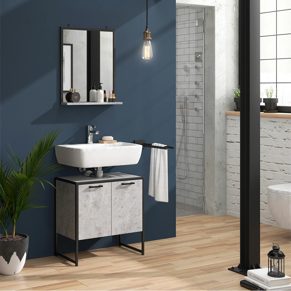 Badezimmerspiegel „Fyrk“ Beton/Schwarz 50 X 60 Cm Vicco