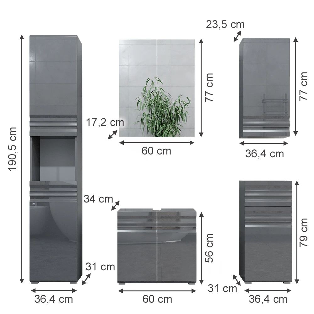 - LIEFERUMFANG: Bad Spiegelschrank, 2x Midischrank, Waschbeckenunterschrank, Badschrank, Montageanleitung, Montagematerial