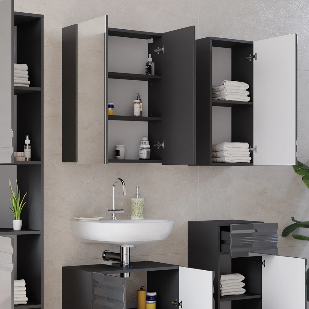Die Möbelserie „Freddy“ präsentiert eine umfangreiche Auswahl an Badezimmermöbeln in verschiedenen Farbkombinationen. Diese Serie bietet zahlreiche Optionen für einzelne Einheiten und Sets und verwandelt das Badezimmer in eine elegante und funktionale Oase der Entspannung.