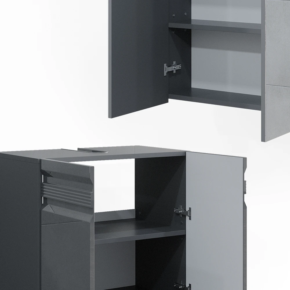 - MATERIAL: Das Set mit dem Spiegelschrank besteht aus pflegeleichter Spanplatte 16 mm, mit einer Melaminharzbeschichtung.