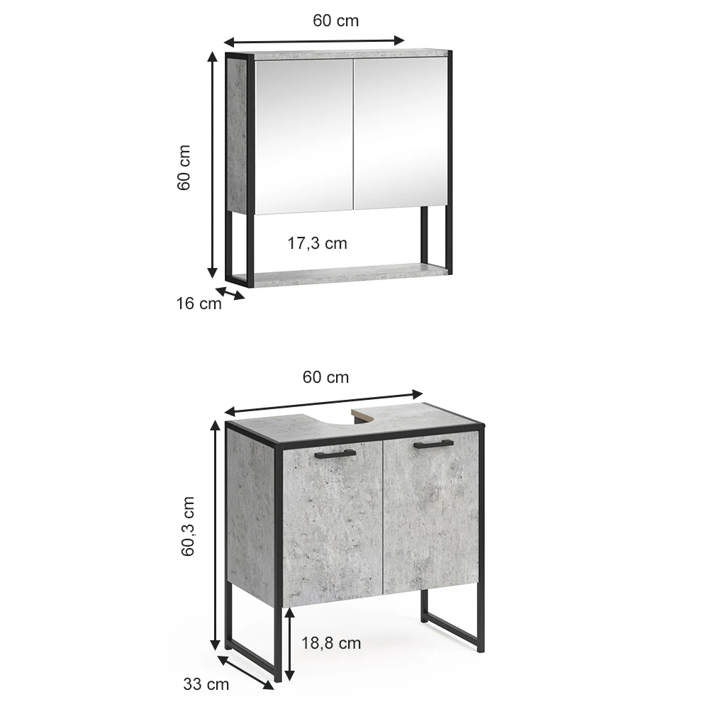- MATERIAL: Das Set mit dem Spiegelschrank besteht aus pflegeleichter Spanplatte 16 mm, mit einer Melaminharzbeschichtung.
