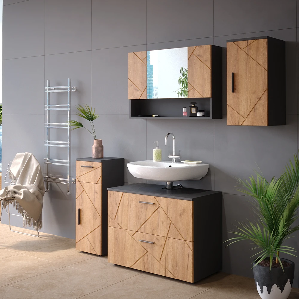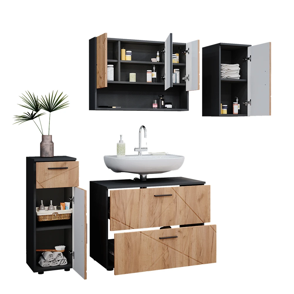 Badmöbel Set „Irma“ Anthrazit/Eiche 4 Teile Vicco