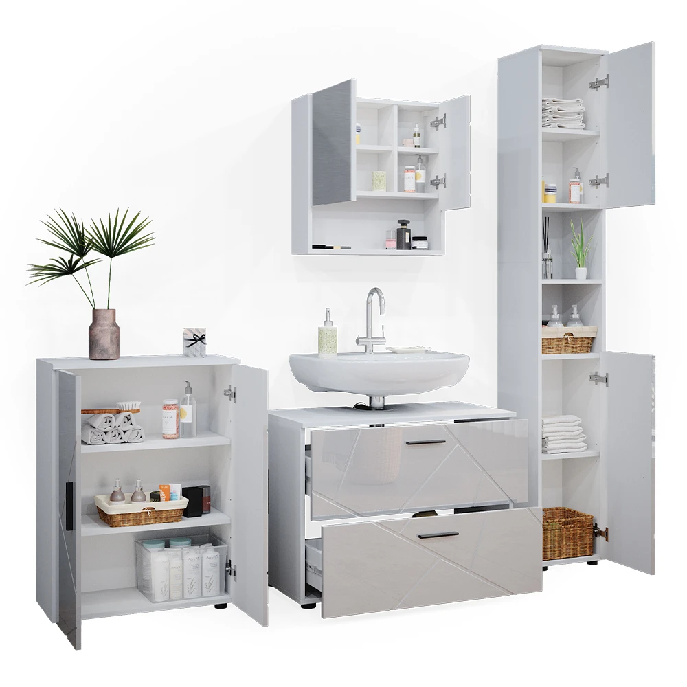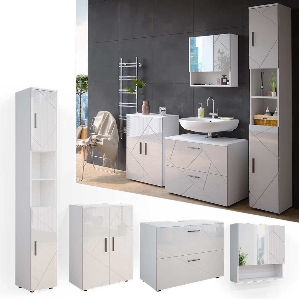 - Das Badezimmerschrank-Set bietet vielfältige Kombinationsmöglichkeiten, ideal für eine stilvolle und funktionale Einrichtung.