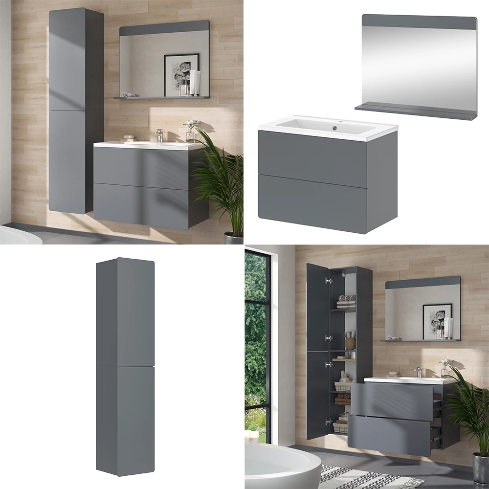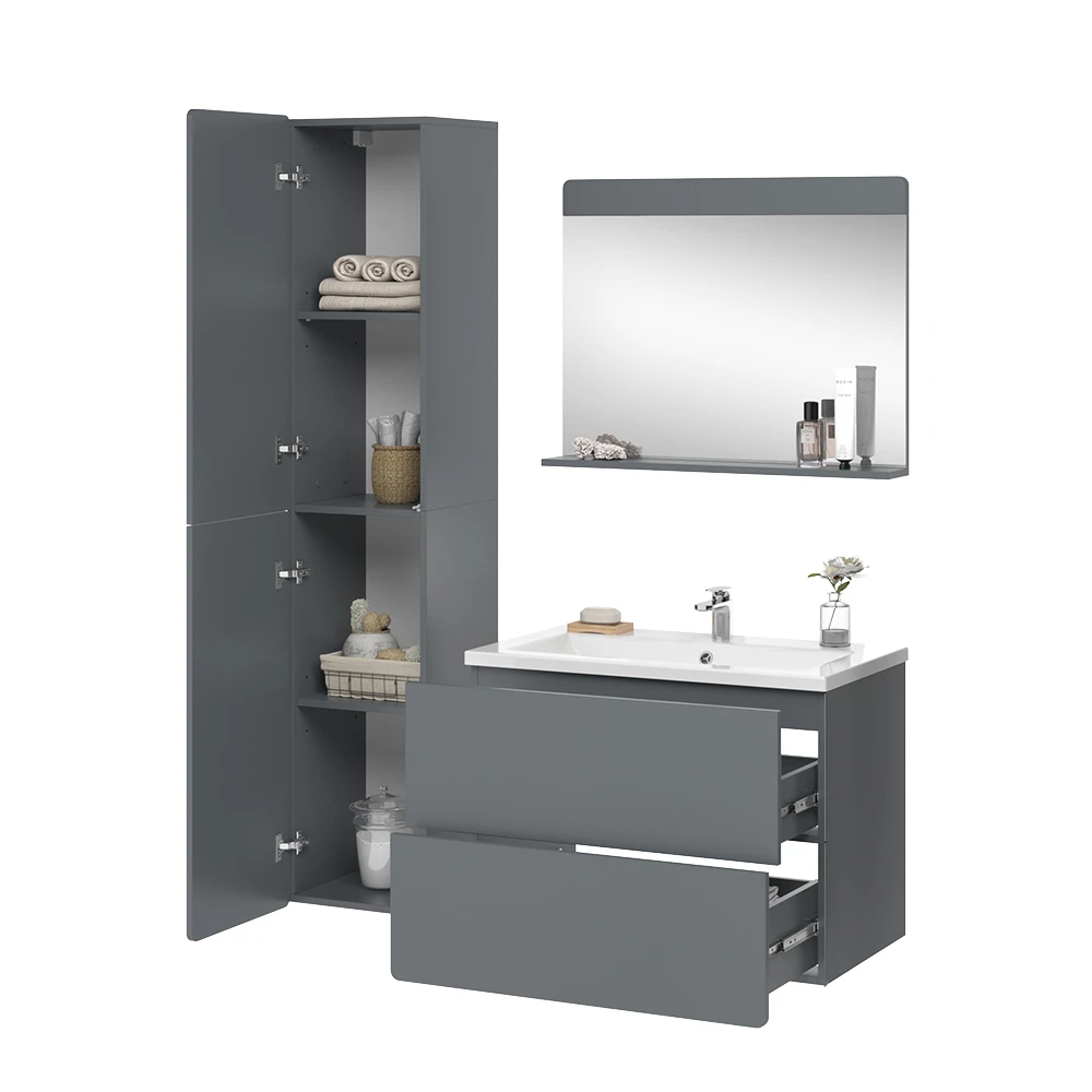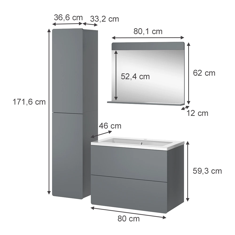 - LIEFERUMFANG: Waschbeckenunterschrank, Einbau-Waschbecken, Badezimmerspiegel, Hochschrank, Montageanleitung, Montagematerial