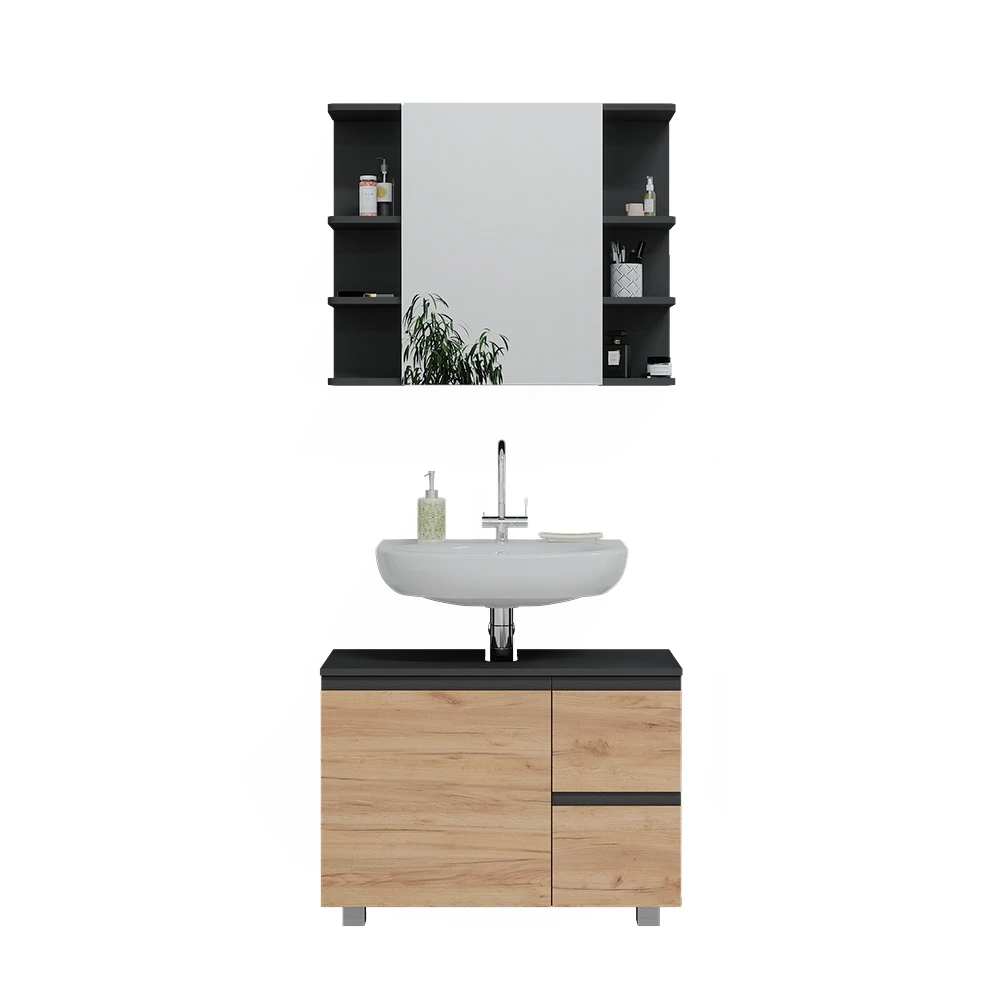 - MATERIAL: Das Set mit dem Spiegelschrank besteht aus pflegeleichter Spanplatte 16 mm, mit einer Melaminharzbeschichtung.