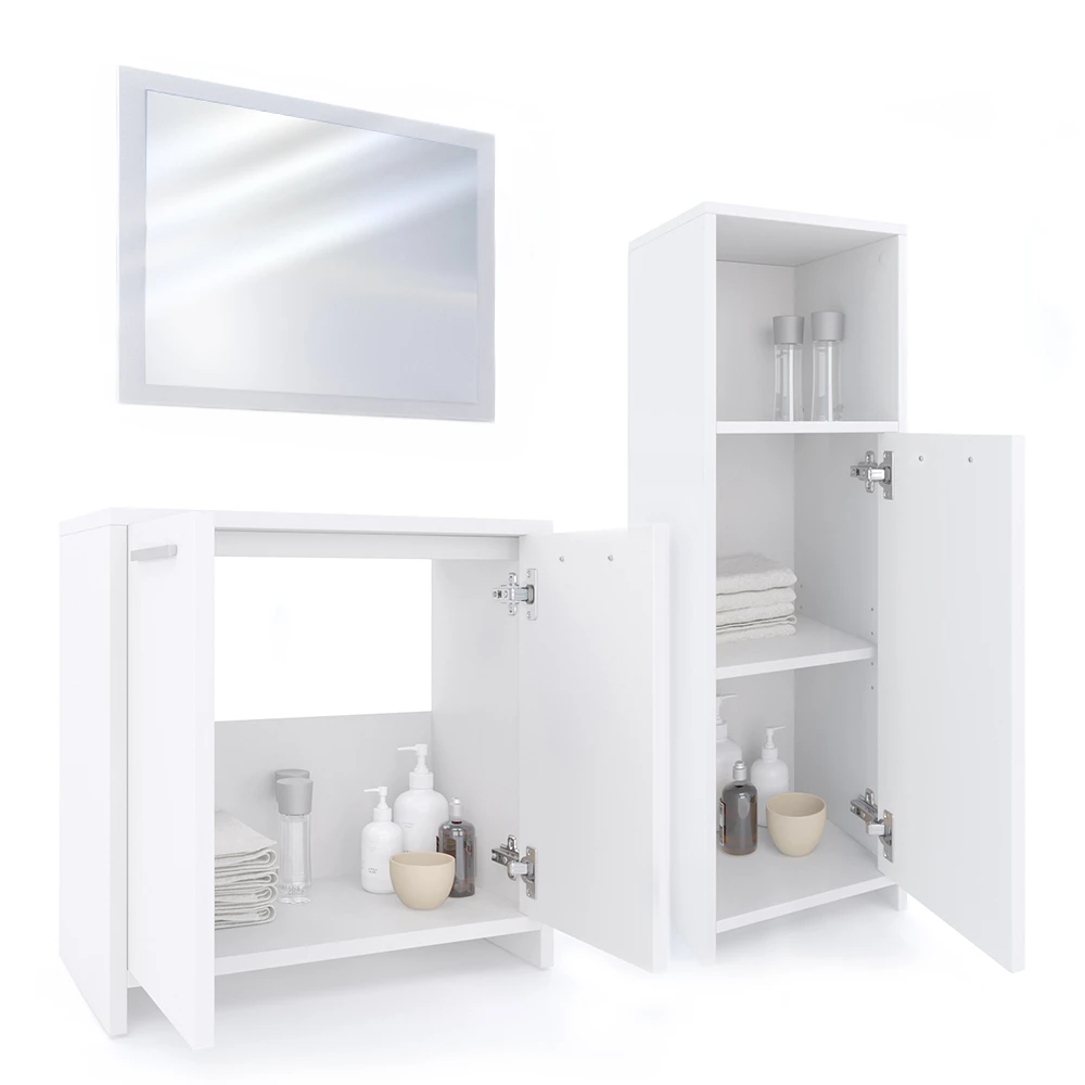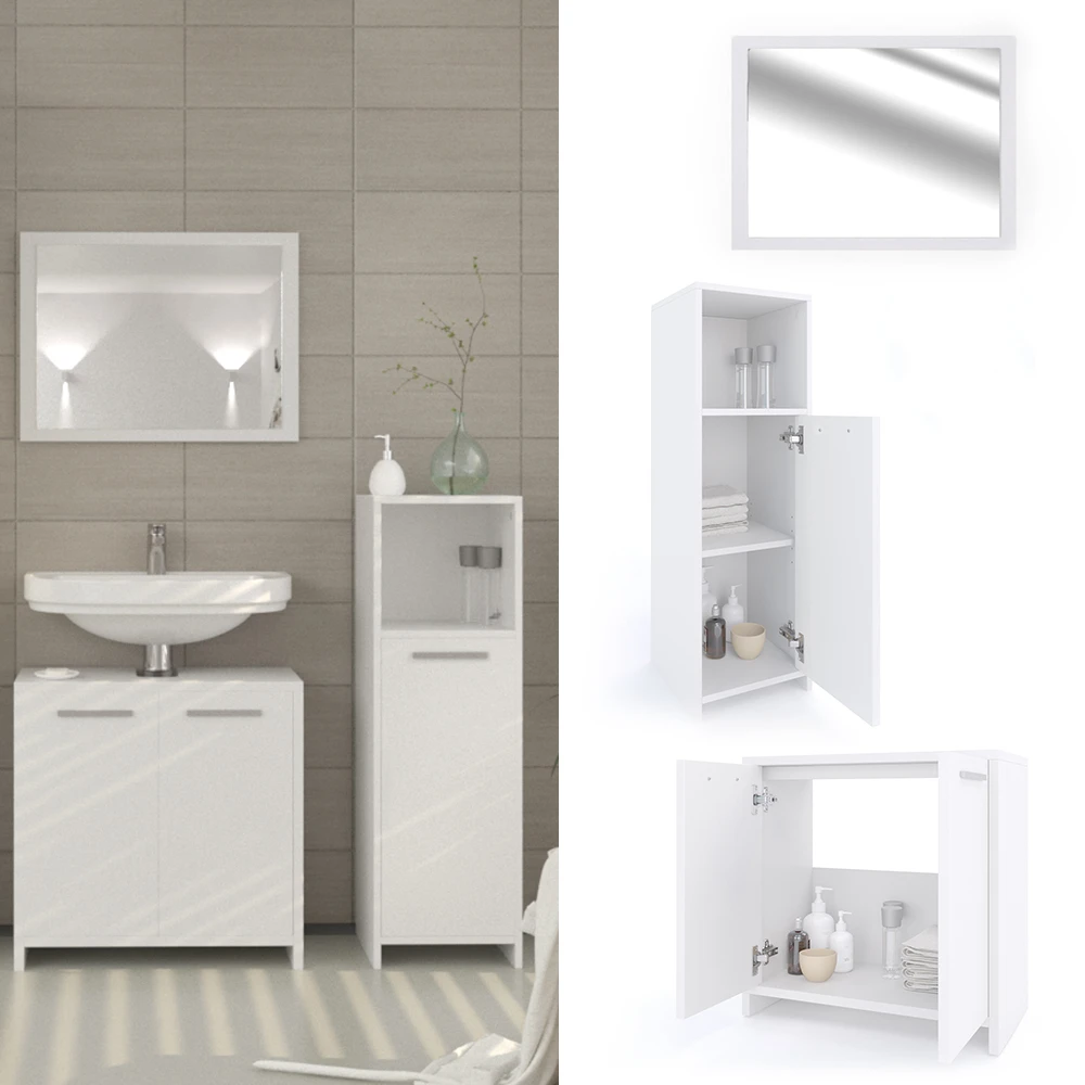 - MATERIAL: Das Set mit dem Spiegelschrank besteht aus pflegeleichter Spanplatte 16 mm, mit einer Melaminharzbeschichtung.