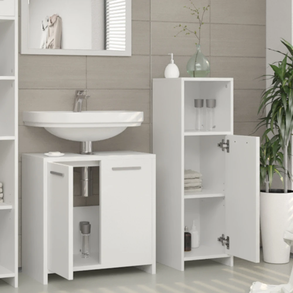 Das Badezimmer ist einer der wichtigsten Räume in unserem Zuhause und sollte deshalb mit Bedacht eingerichtet werden. Mit dem Badmöbel Set Kiko von 3 Teilen haben Sie alles, was Sie für ein modernes und stilvolles Badezimmer benötigen. Das Set besteht aus einem Badezimmerschrank, einem Waschbeckenunterschrank und einem Spiegelschrank, die alle perfekt aufeinander abgestimmt sind und Ihnen viel Stauraum bieten. Alle Möbelstücke sind in einem diskreten Stil gehalten, sodass Sie verschiedene Sets der Serie miteinander kombinieren können, um Ihr perfektes Badezimmer zu erschaffen.