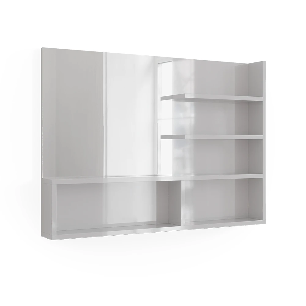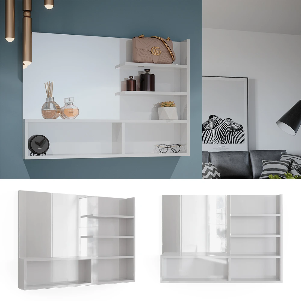 Mit unserem Spiegelregal profitieren Sie von einem großzügigen Spiegel und zahlreichen Ablagen für eine optimale Organisation im Bad. Das moderne Design unseres Produkts verleiht Ihrem Badezimmer einen zeitgemäßen, eleganten Look. Unser Wandspiegelregal zeichnet sich durch seine hochwertige Verarbeitung, die Langlebigkeit und Zuverlässigkeit gewährleistet, aus. Die leichte Wandmontage ermöglicht einen unkomplizierten Aufbau, sodass Sie schnell und mühelos von den Vorzügen unseres Regals profitieren können.