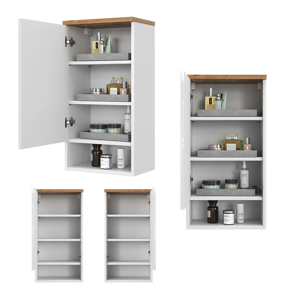 - MAßE: Der hängender Badezimmerschrank hat folgende Abmessungen: Breite: 40 cm, Höhe: 77,5 cm, Tiefe: 27 cm. Alle detaillierten Größen sind auf den Fotos angegeben.