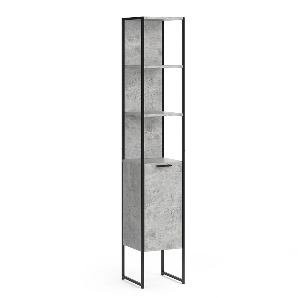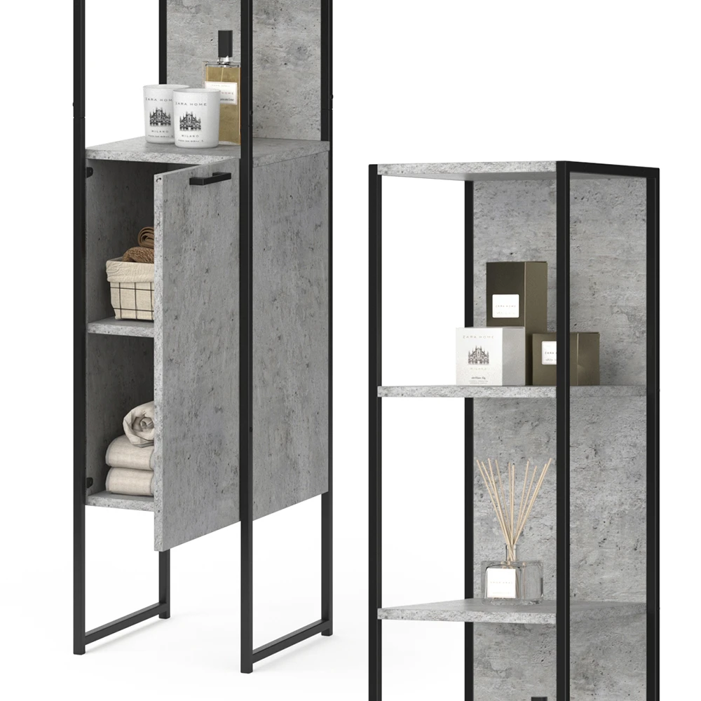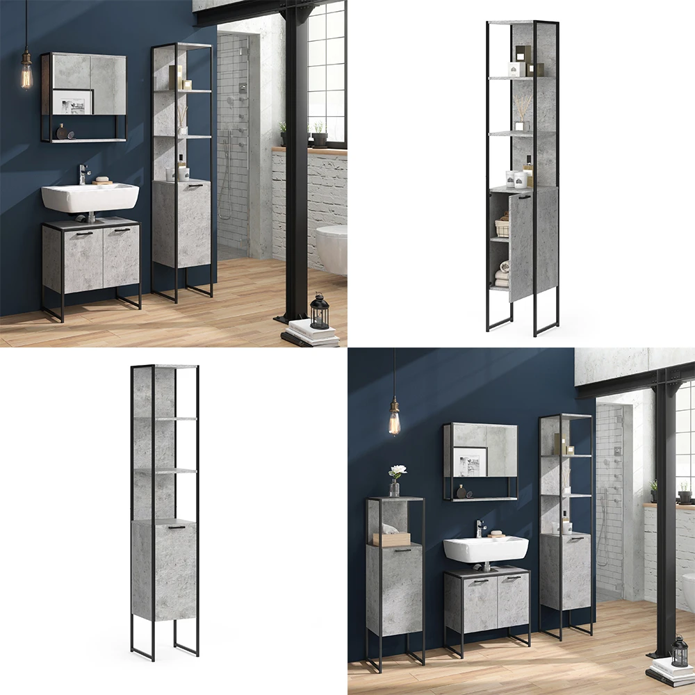 - Der Badezimmerhochschrank bietet dank offener und geschlossener Ablagen reichlich Stauraum. Der pulverbeschichtete Metallrahmen sorgt für eine moderne Optik.