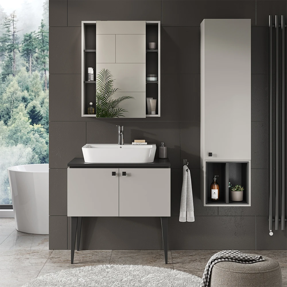Die Möbelserie „Gerta“ bietet stilvolle Badezimmerschränke und -sets, die mit ihrem modernen Design und hochwertigen Materialien eine elegante Lösung für die Einrichtung Ihres Badezimmers bieten. Mit „Gerta“ schaffen Sie eine funktionale und ästhetische Umgebung für Ihre tägliche Pflegeroutine.