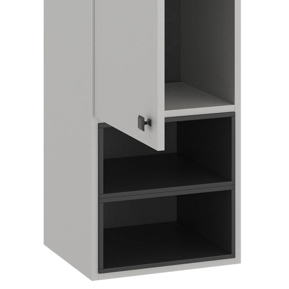 Die Tür vom Vicco Hängeschrank Gerta ist beidseitig anbringbar. Das schwarze Fach ist herausnehmbar und kann auch anders gedreht eingesetzt werden -geeignet für den individuellen Bedarf. Der Hängeschrank ist mit einer Melaminharzbeschichtung versehen, wodurch dieser lediglich mit einem feuchten Tuch abgewischt werden muss. Der Hängeschrank ist mit unseren anderen Möbeln der Serie Gerta kombinierbar.