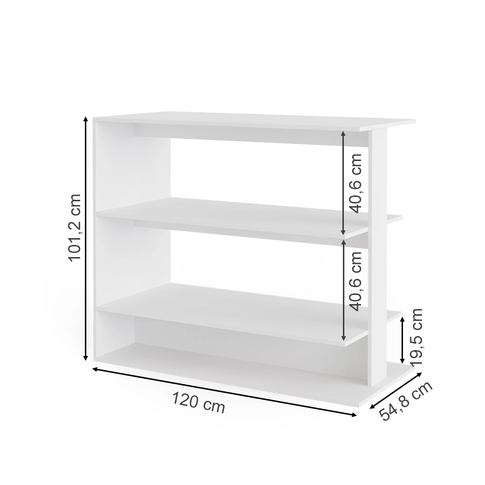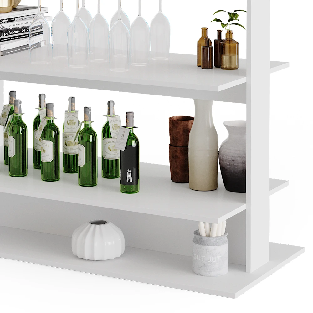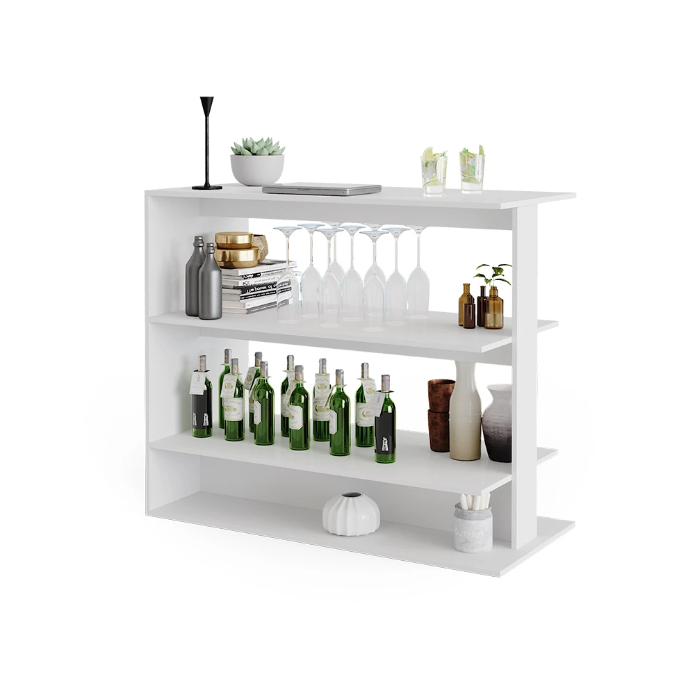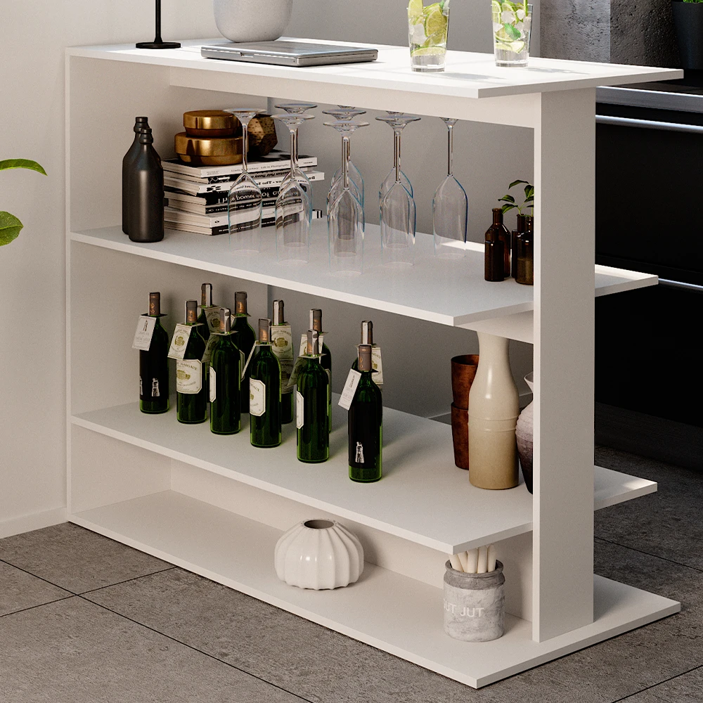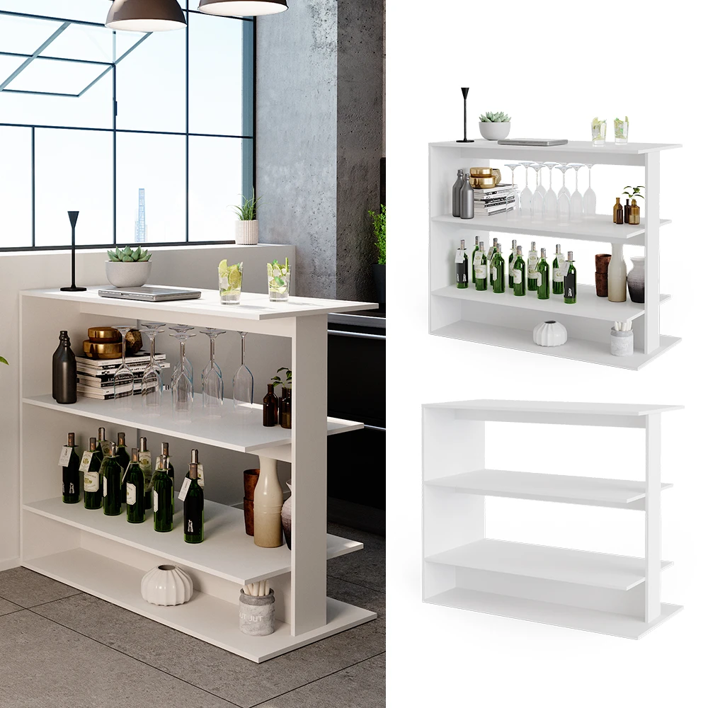 - Der Bartresen für das Esszimmer bietet drei breite offene Ablagen und ist solide und stabil. Ideal für kleine Räume.