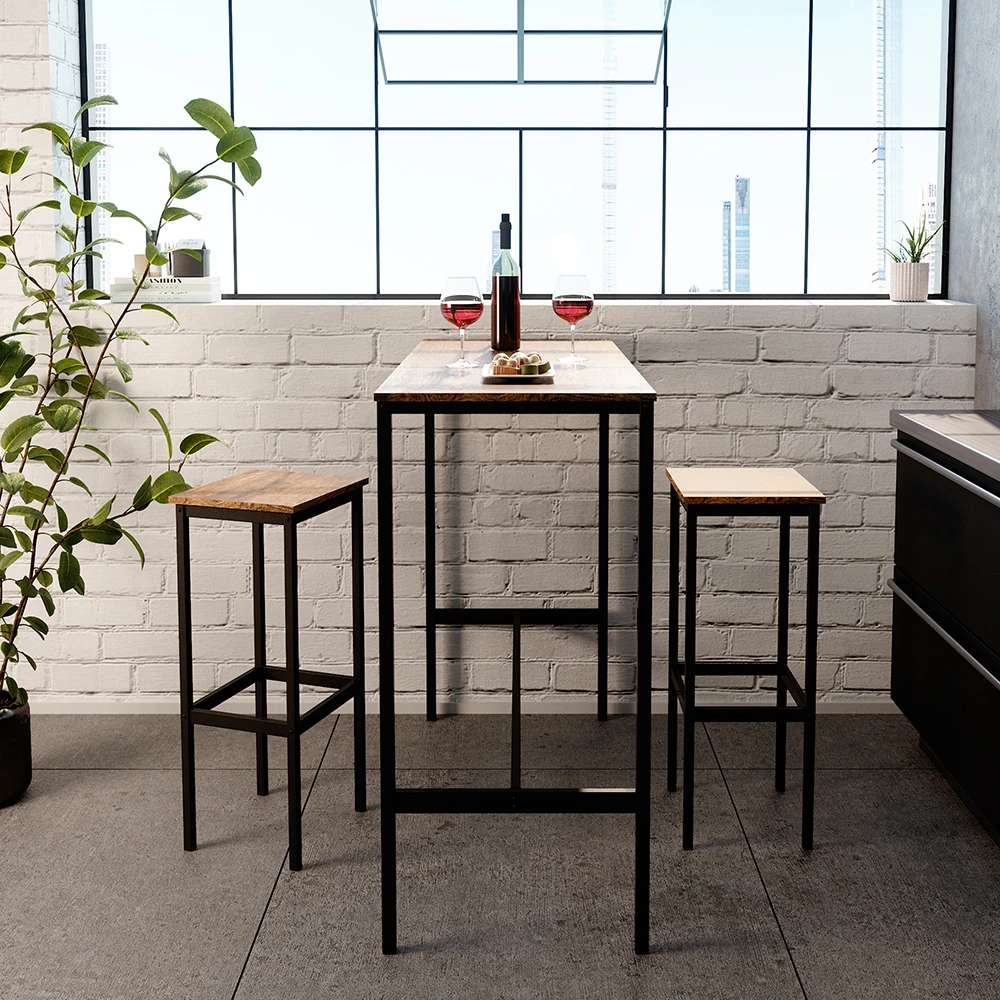 Bartisch Set „Fyrk“ Eiche Rustikal/Schwarz 120 X 50 Cm Mit 2 Barhockern Vicco