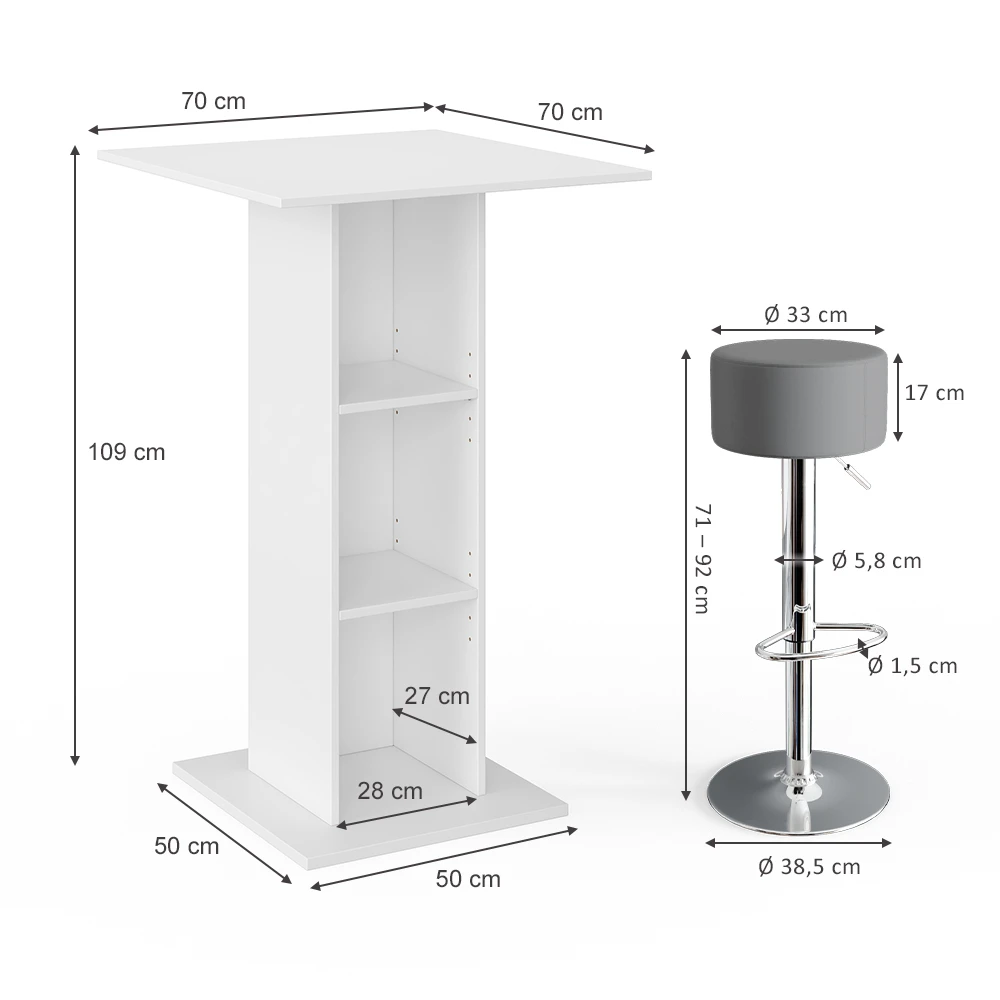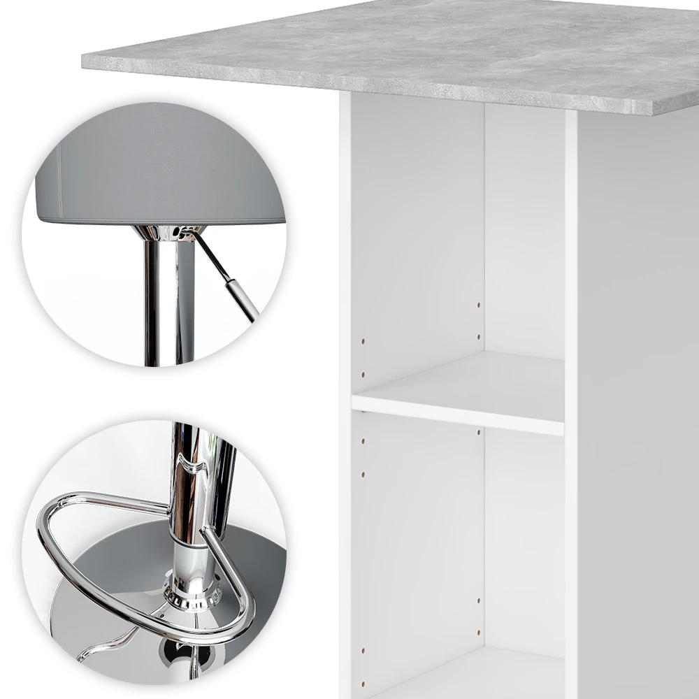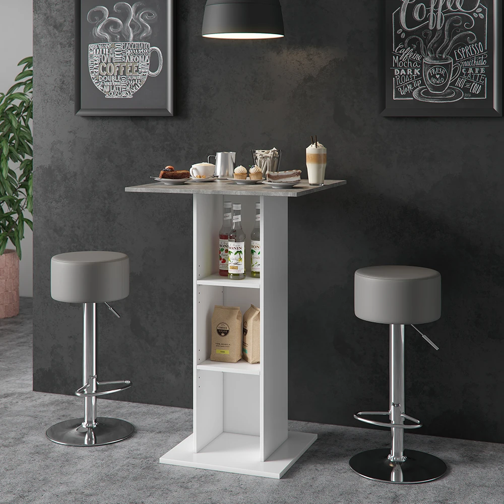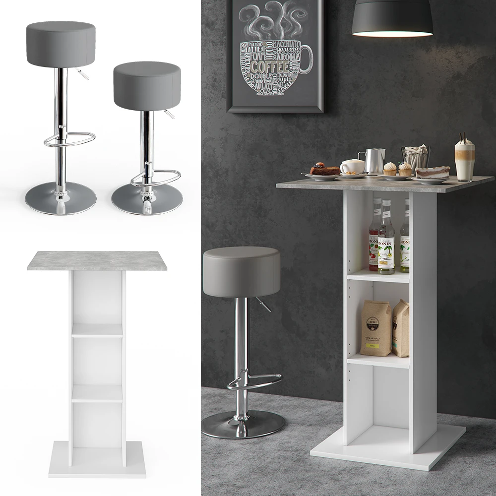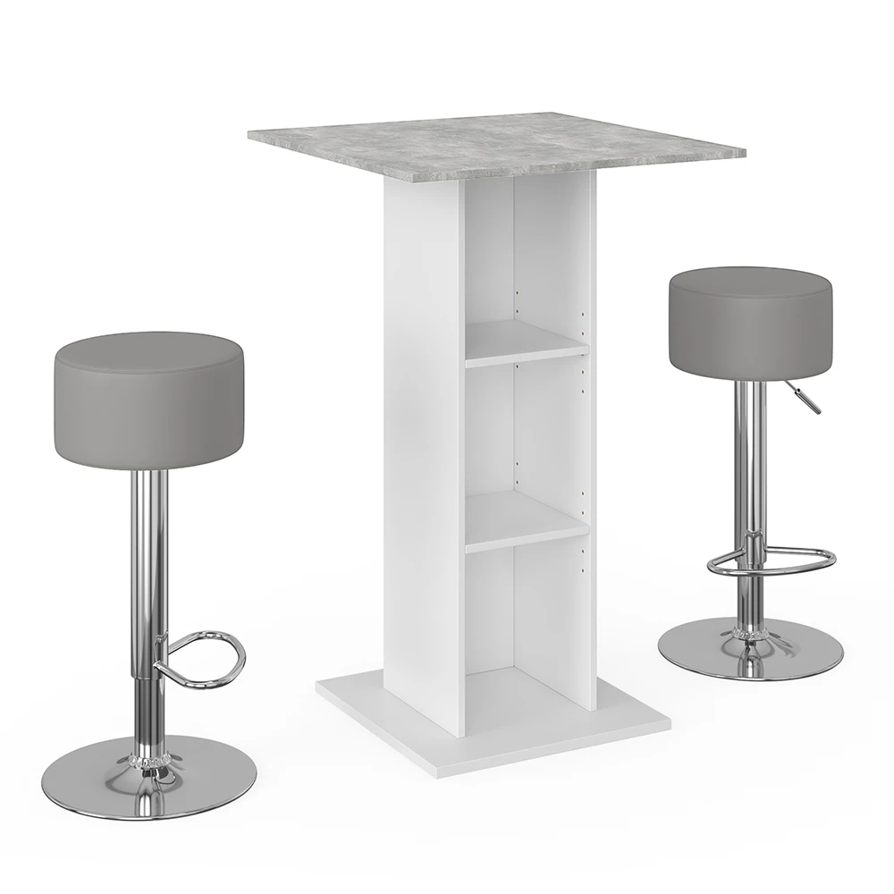 Bartisch Set „Rodeo“ Beton/Weiß 70 X 70 Cm Mit 2 Barhockern Vicco