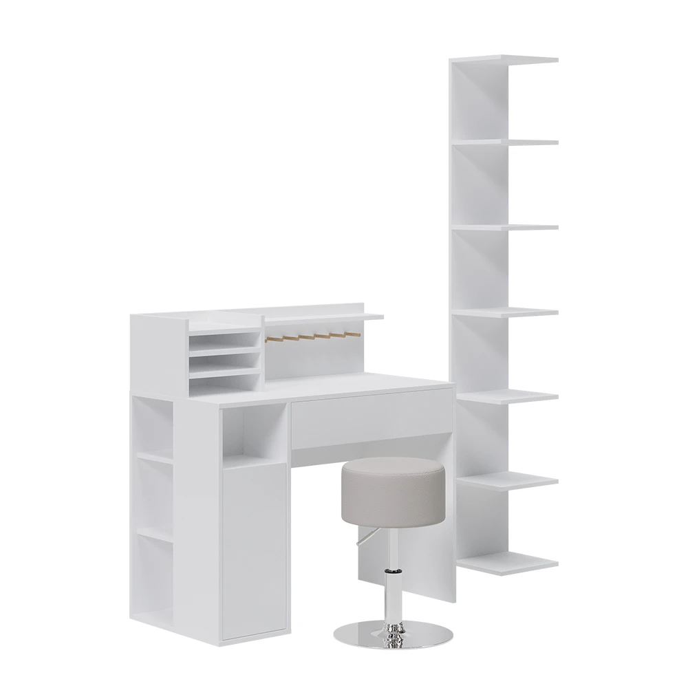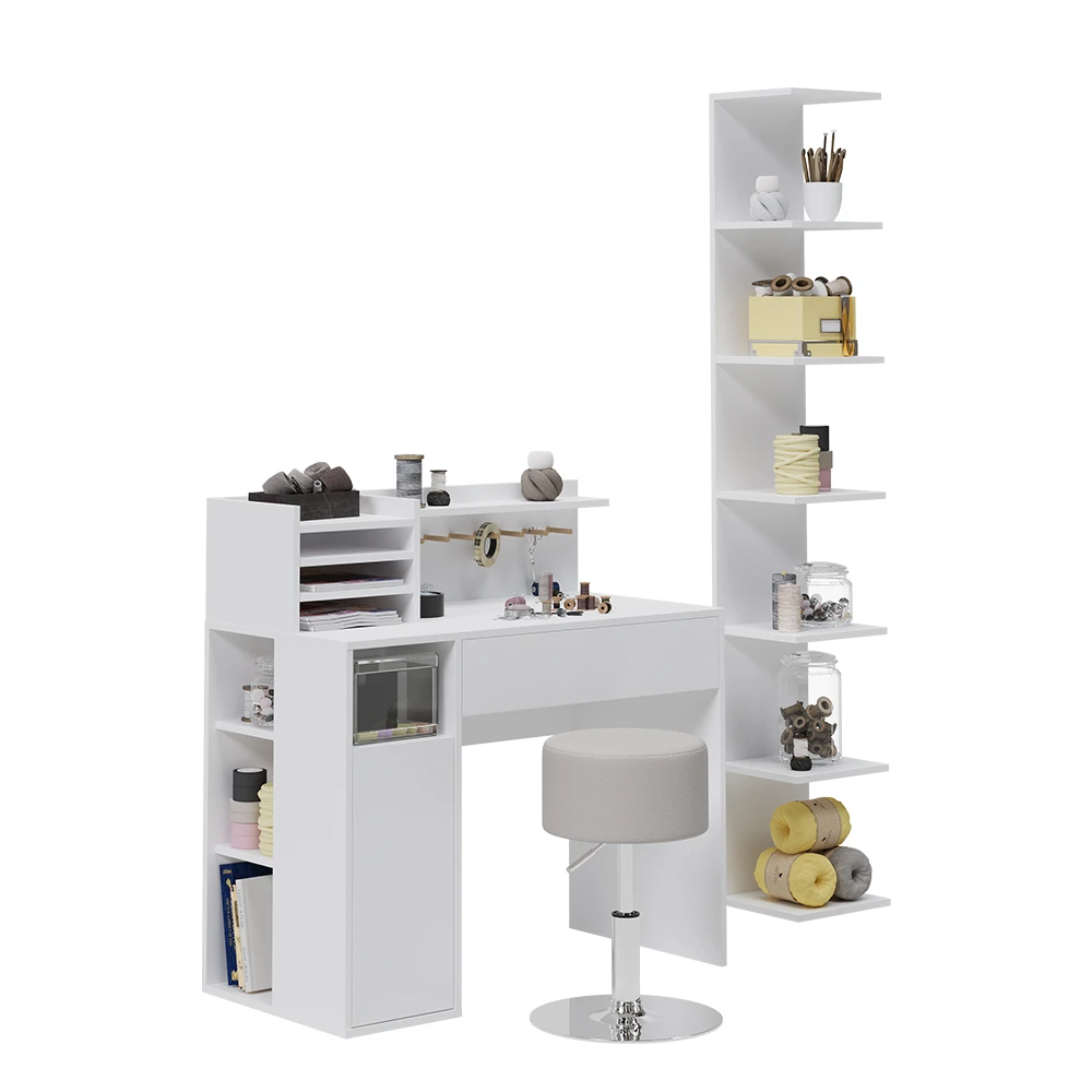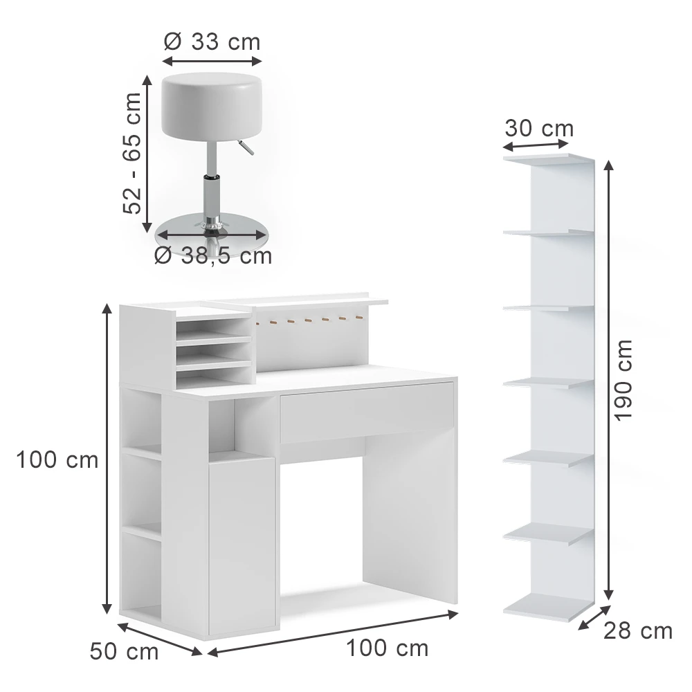 Der Schreibtisch ist die perfekte Lösung für ein funktionales Büro oder Homeoffice. Mit einem Stauraum für Büromaterial und einem Arbeitsbereich, der ausreichend Platz für einen Computer oder Laptop bietet, ist dieser Tisch sowohl für den privaten als auch für den geschäftlichen Gebrauch bestens geeignet. Der höhenverstellbare Hocker und das Bücherregal sorgen für zusätzlichen Komfort und ermöglichen eine perfekt abgestimmte Arbeitsumgebung. Sie werden von der Vielseitigkeit des Tisches begeistert sein, da Sie verschiedene Sets der Serie kombinieren können, um eine optimale Raumgestaltung zu erzielen. Holen Sie sich mit diesem Schreibtisch das perfekte Arbeitsumfeld in Ihr Büro oder Homeoffice.