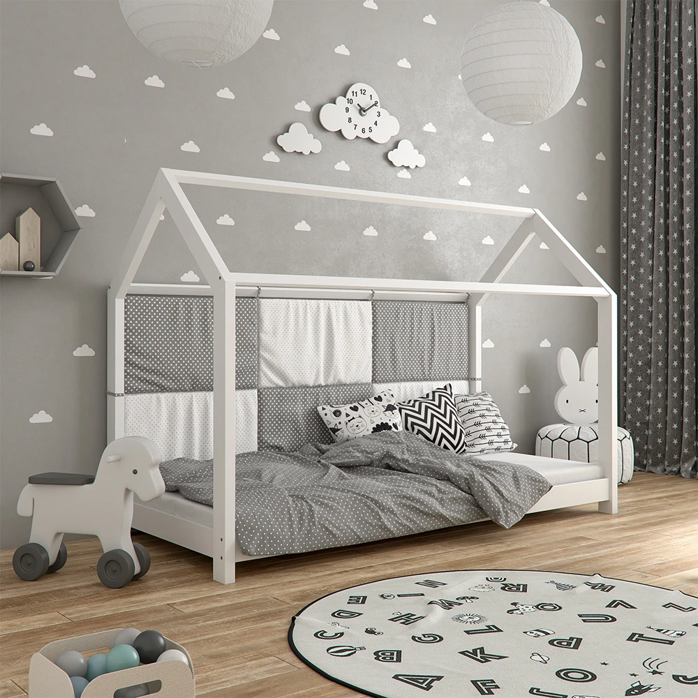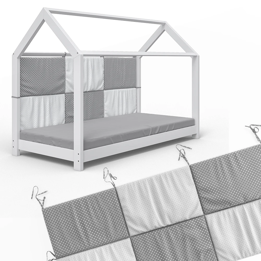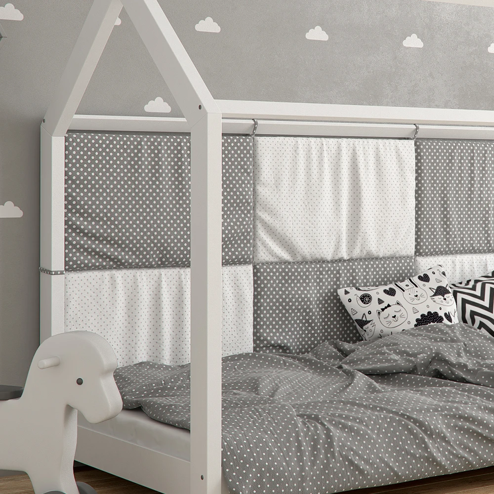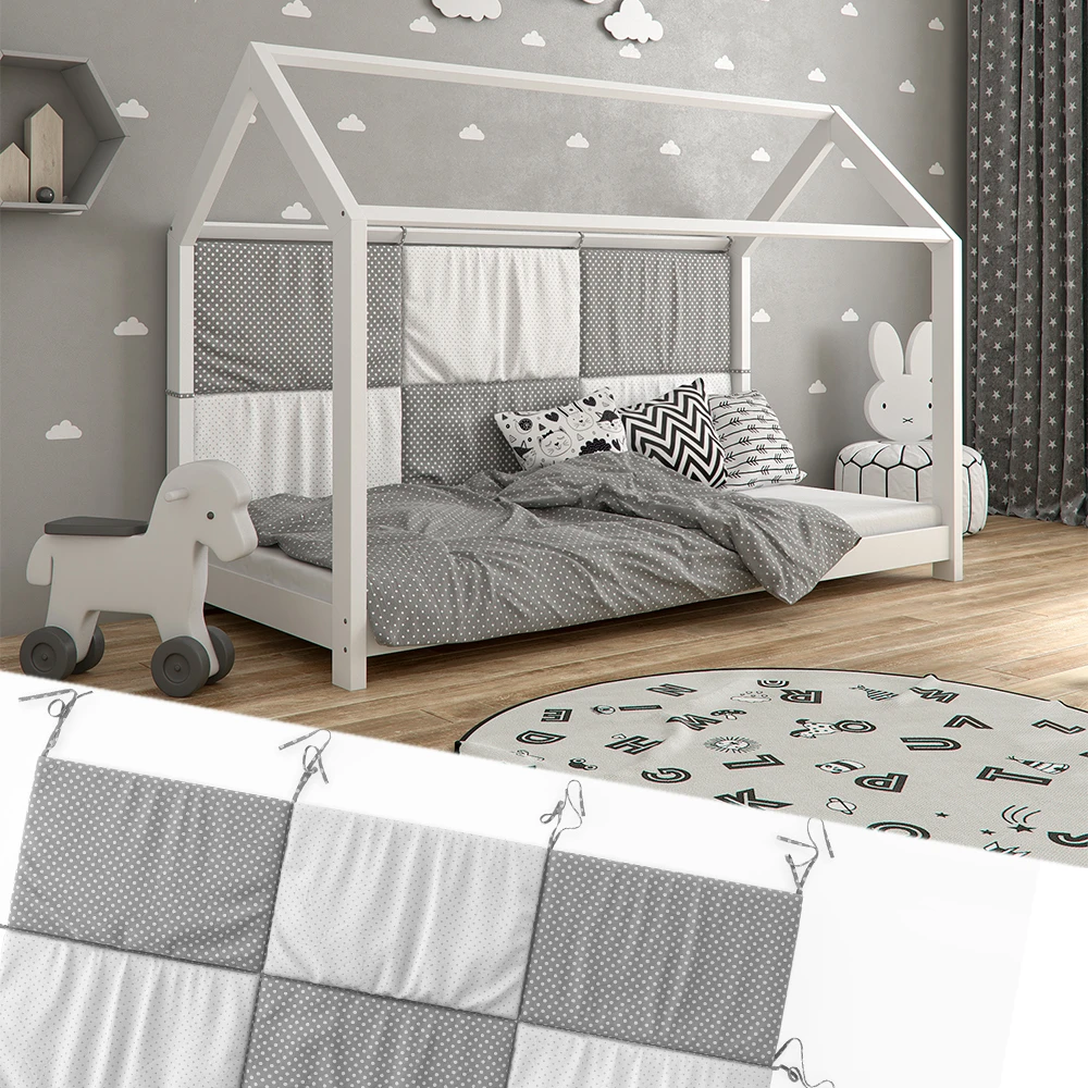 Fantasievolle Rückwand Verkleidung, in den Farben Grau und Weiß, für die allseits beliebten „Wiki“ Kinderbetten.