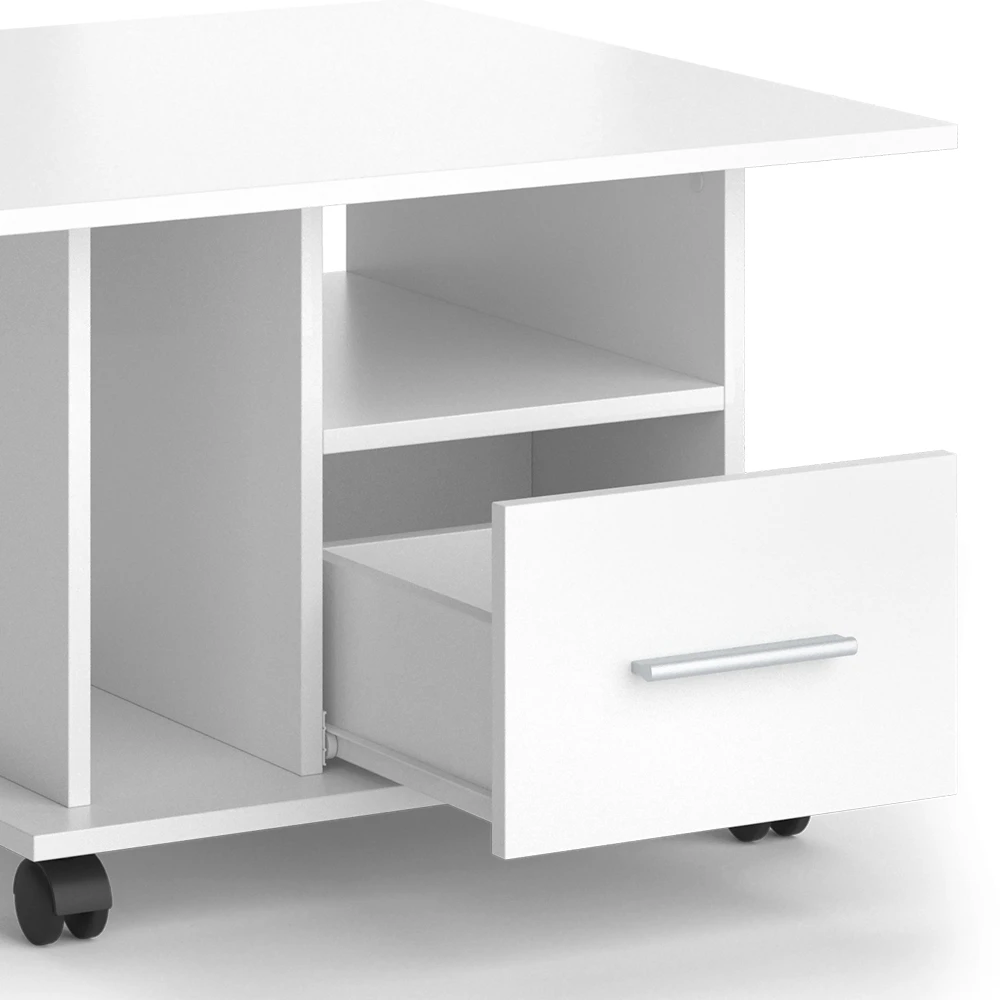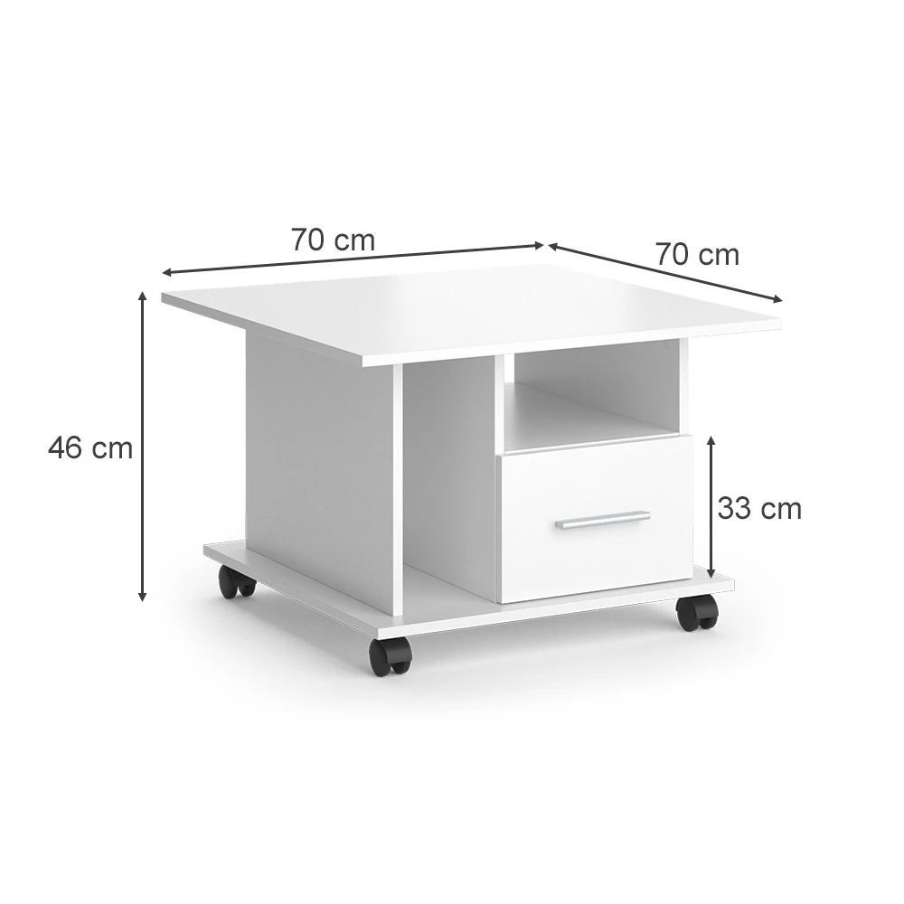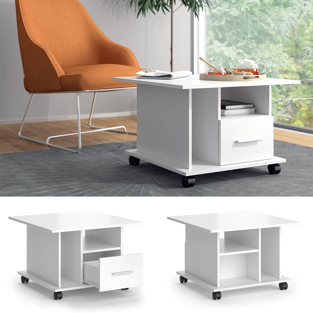 - Der Wohnzimmertisch mit Schublade bietet reichlich Stauraum durch offene Regale und eine ausziehbare Schublade. Ein praktisches Möbelstück für jedes Wohnzimmer.