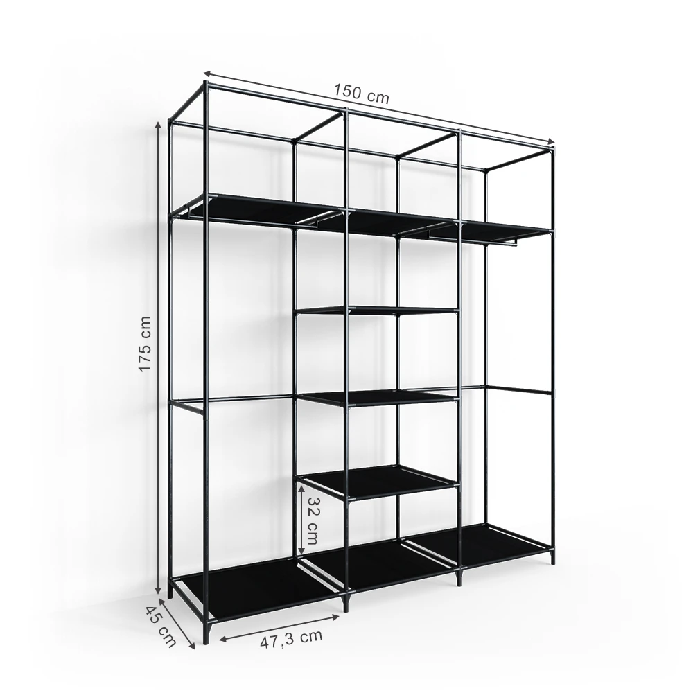 Egal ob Schlafzimmer, Kinderzimmer, Keller oder beim Camping – dieser stabile Stoffschrank lässt sich schnell und einfach aufbauen und bietet durch die 9 Ablagen und den zwei Kleiderstangen viel Stauraum.