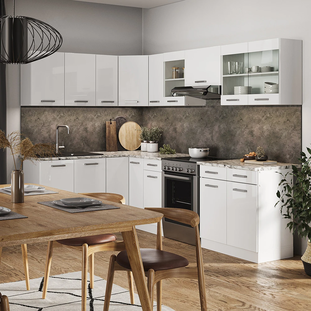 Die Eckküche „Rick“ mit Arbeitsplatte ist die Komplettlösung für jede L-förmige Küchenzeile. Dank ihrer modularen Bauweise können Sie die Küche nach Belieben umstellen und passgenau einrichten. Die höhenverstellbaren Füße sorgen für eine perfekte Anpassung an Ihre Küchenzeile. Zusätzliche Module können jederzeit hinzugefügt werden, um Ihre Küche zu erweitern. „Rick“ ist die ideale Lösung, um Ihre Eckküche perfekt zu gestalten und optimal auszunutzen. Lassen Sie sich von „Rick“ inspirieren und machen Sie Ihre Küche zu einem wahren Highlight in Ihrem Zuhause.