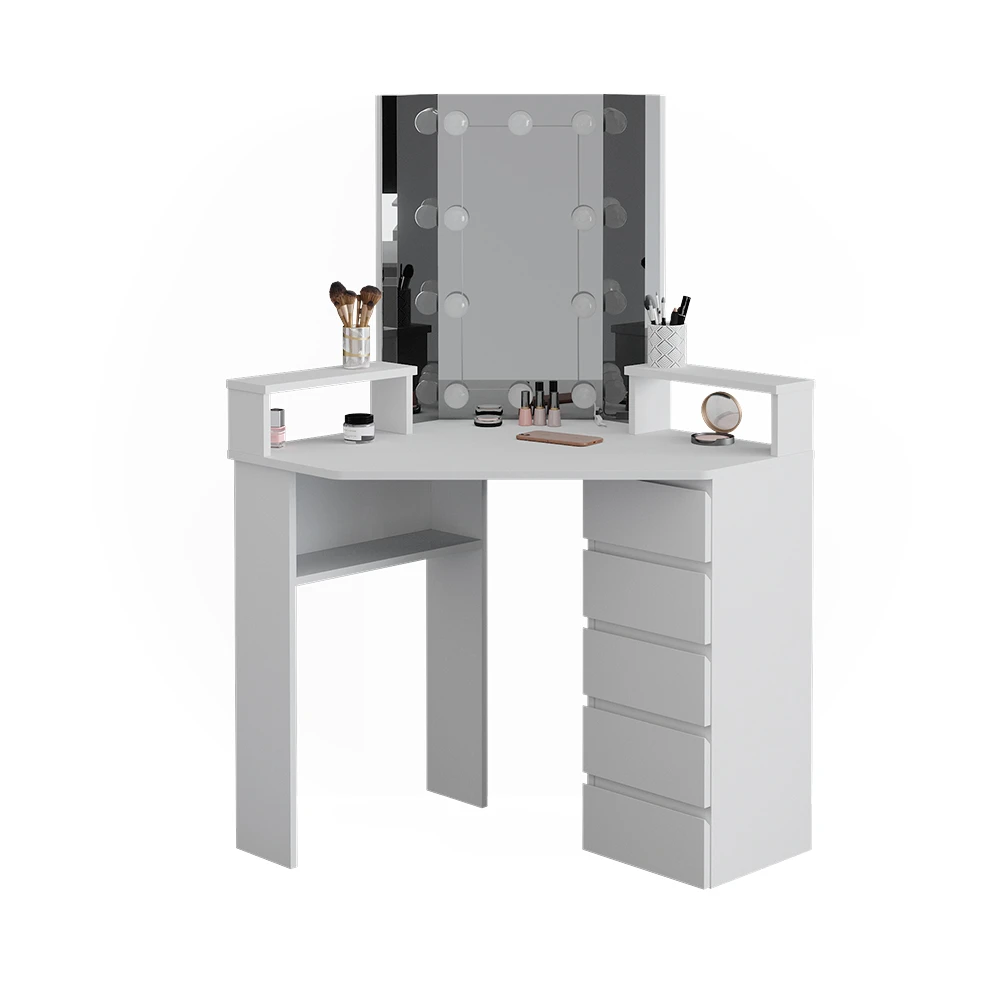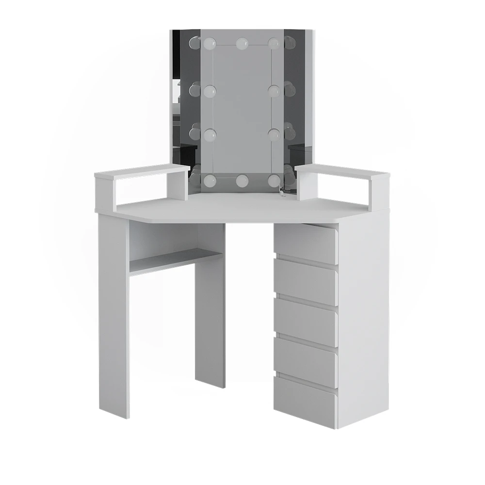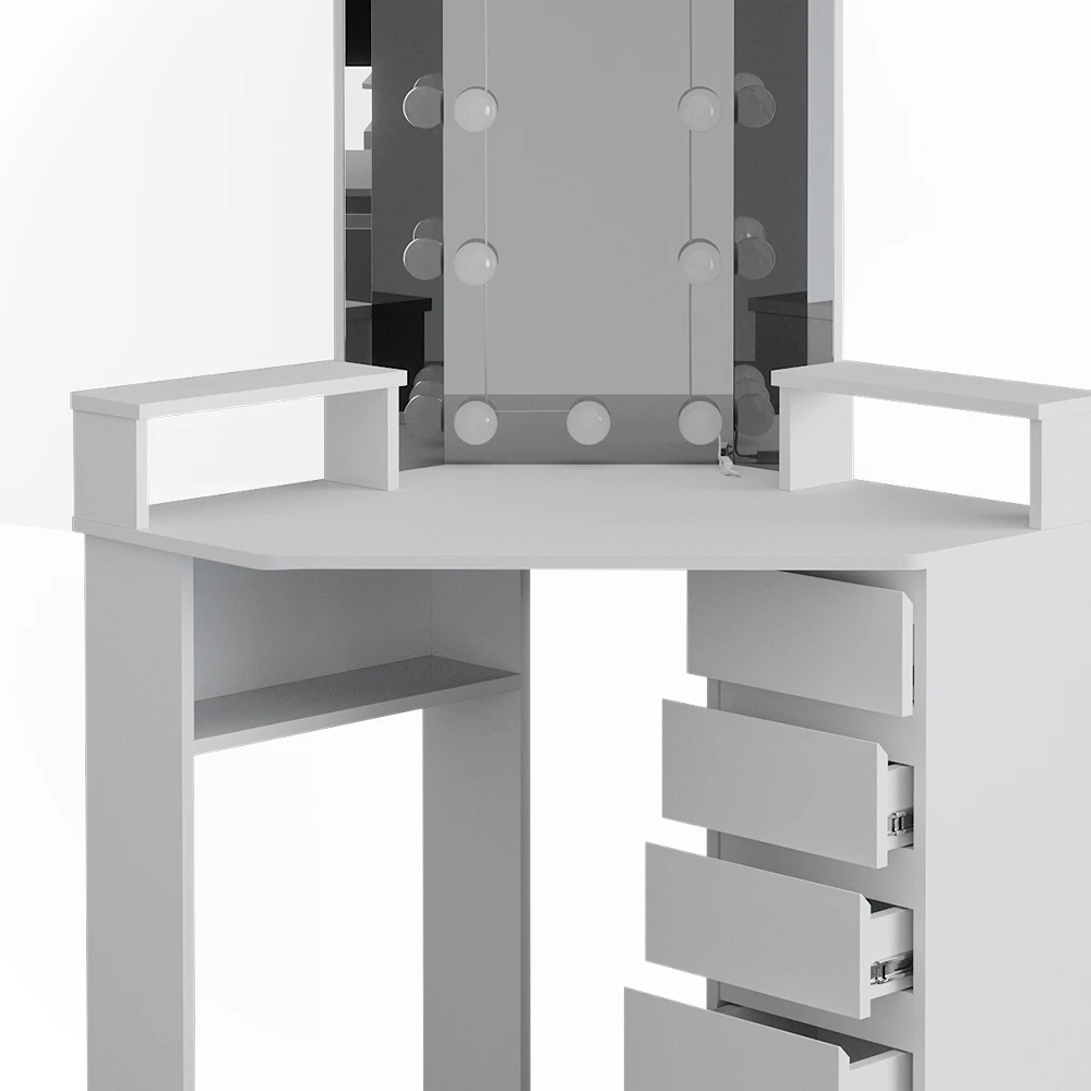 - LIEFERUMFANG: Frisiertisch für die Ecke, LED-Lichterkette, Montageanleitung, Montagematerial.
