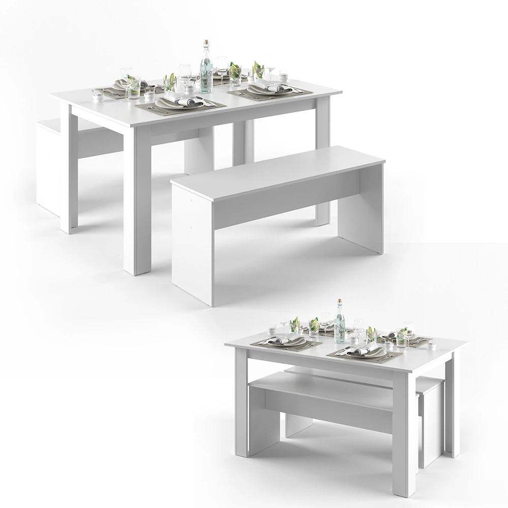 Das Esstisch Set „Sentio“ mit 2 Bänken ist die perfekte Wahl für alle, die eine stilvolle und dennoch praktische Essgruppe suchen. Der klassische Stil passt zu jeder Einrichtung und die ergonomische Gestaltung sorgt für maximalen Komfort beim Essen oder geselligen Beisammensein. Die robuste Bauweise garantiert eine lange Lebensdauer, so dass Sie dieses Set jahrelang genießen können. Besonders schön ist, dass es auch in anderen Ausführungen erhältlich ist, so dass Sie die perfekte Größe für Ihre Küche oder Ihr Esszimmer finden können. Ob für eine kleine Familie oder eine größere Gruppe von Freunden, das Sentio Set ist die ideale Wahl. Investieren Sie in Qualität und wählen Sie Sentio!