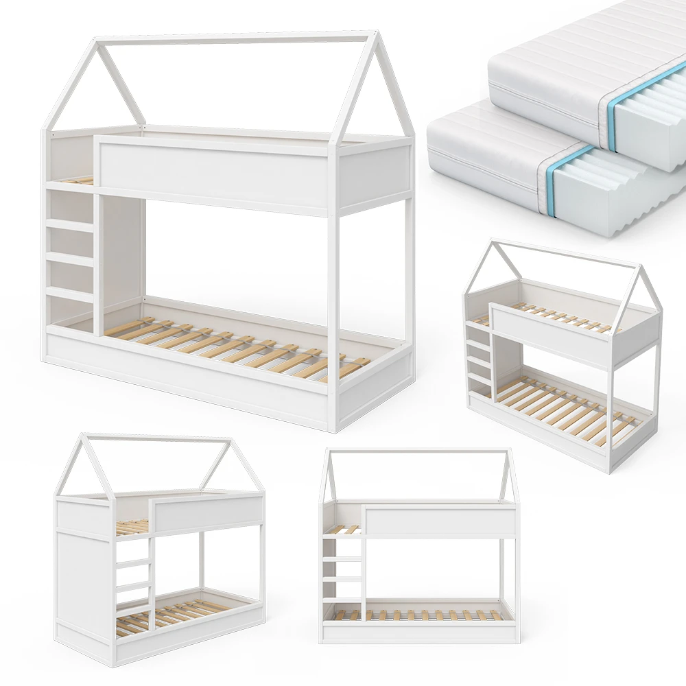 - LIEFERUMFANG: Etagenbett, 2x Kaltschaummatratze, Montageanleitung, Montagematerial