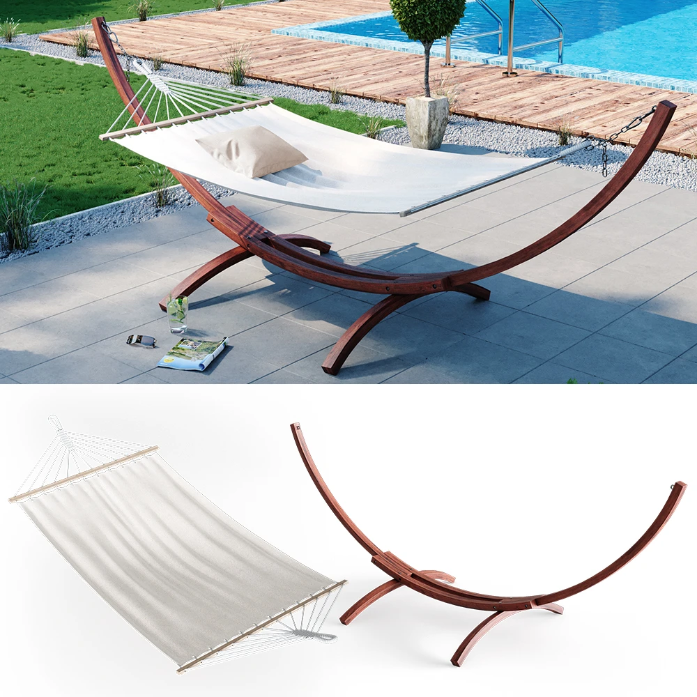 Entspannen Sie sich in Ihrer eigenen Hängematte mit Holzrahmen und lassen Sie Ihre Sorgen einfach hinter sich. Diese Hängematte bietet das perfekte Upgrade für Ihren Garten oder Pool, um Ihre Freizeit entspannt zu genießen. Mit einem einer Hängeliege und einem Hängesessel können Sie je nach Bedarf entscheiden, wie Sie sich am besten ausruhen möchten. Der Aufbau ist schnell und einfach, dank des robusten und stabilen Holzrahmens können Sie darauf vertrauen, dass die Hängematte bis zu 120 kg tragen kann. Diese Hängematte ist nicht nur praktisch, sondern sieht auch noch unglaublich gut aus. Gehen Sie also einen Schritt weiter und gönnen Sie sich den Luxus, den Sie verdienen.