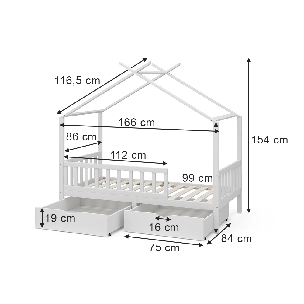 - MAßE: Das Kinderbett ist passend für eine Matratze von 80×160 cm und hat eine Höhe von 155 cm. Alle detaillierten Größen sind auf den Fotos angegeben.