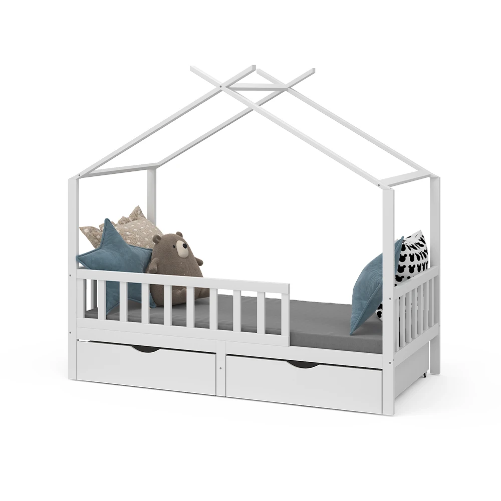 - LIEFERUMFANG: Hausbett, Montageanleitung, Montagematerial, 2 Schubladen