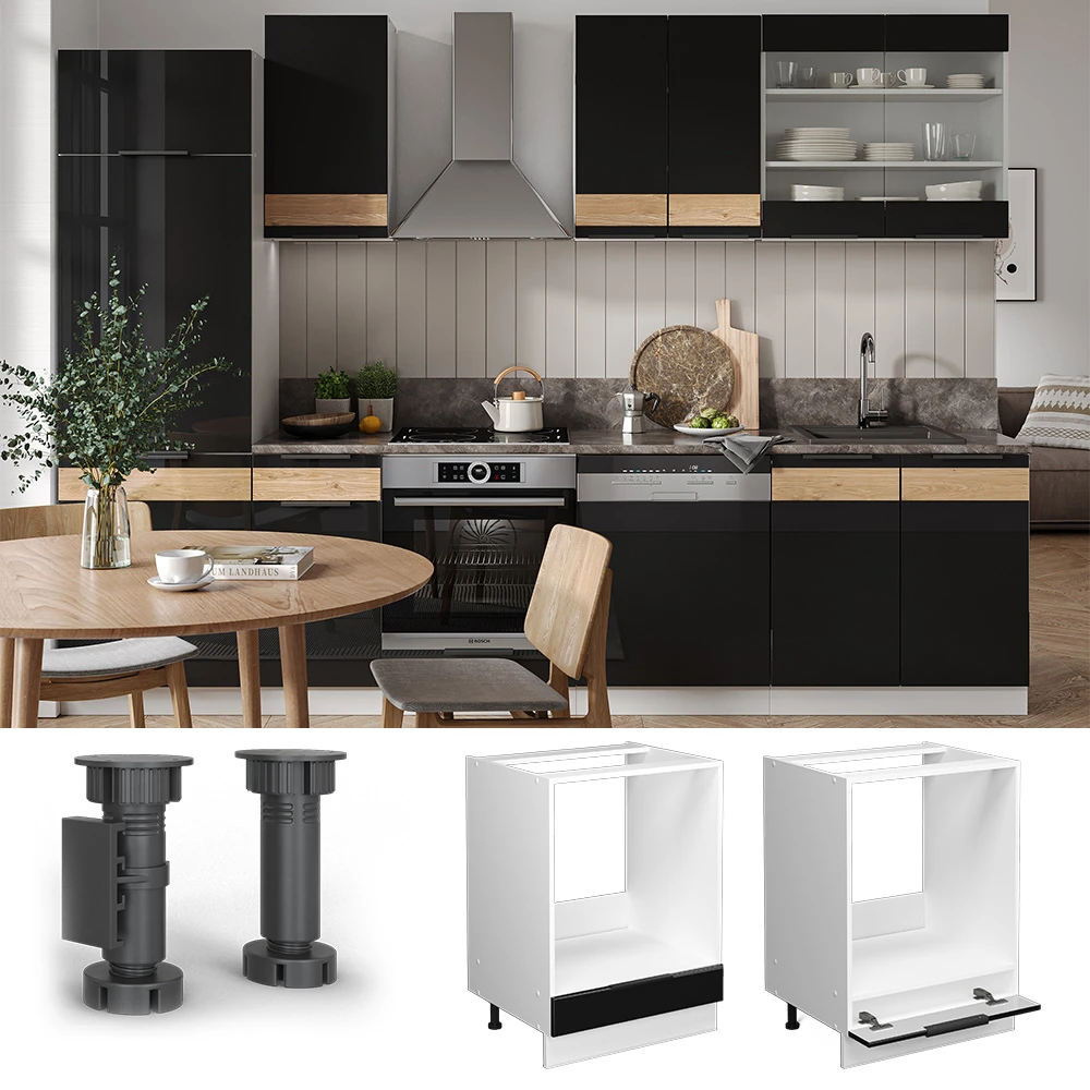 - MAßE: Der Küchenschrank für den Einbauherd hat eine Breite von 60 cm, eine Höhe von 81,6 cm und eine Tiefe von 51,6 cm. Alle detaillierten Größen sind auf den Fotos angegeben.