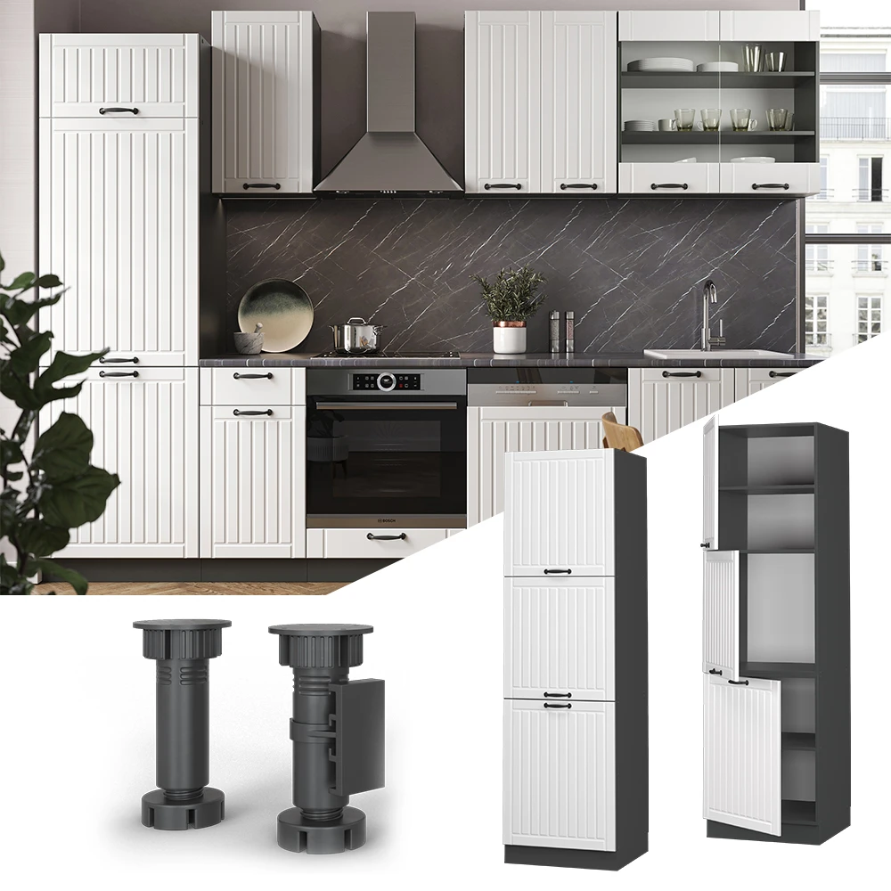 „Fame-Line“ ist eine Möbelserie, die eine Vielzahl von Küchenmodulen und Küchenfertigkomponenten bietet. Mit vielen verschiedenen Farbkombinationen und Größenoptionen für Schränke und fertige Küchen. Die Fronten bestehen aus MDF und die Schränke verfügen über Soft-Close-Scharniere sowie höhenverstellbare Füße bei den Unterschränken. Sie haben die Möglichkeit, Ihre Küche mit einzelnen Modulen zusammenzustellen oder Komplettsets zu erwerben.