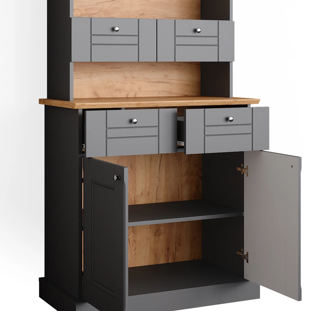 - MAßE: Der Küchenhochschrank hat eine Breite von 80 cm, eine Höhe von 186,2 cm und eine Tiefe von 43 cm. Alle detaillierten Größen sind auf den Fotos angegeben.