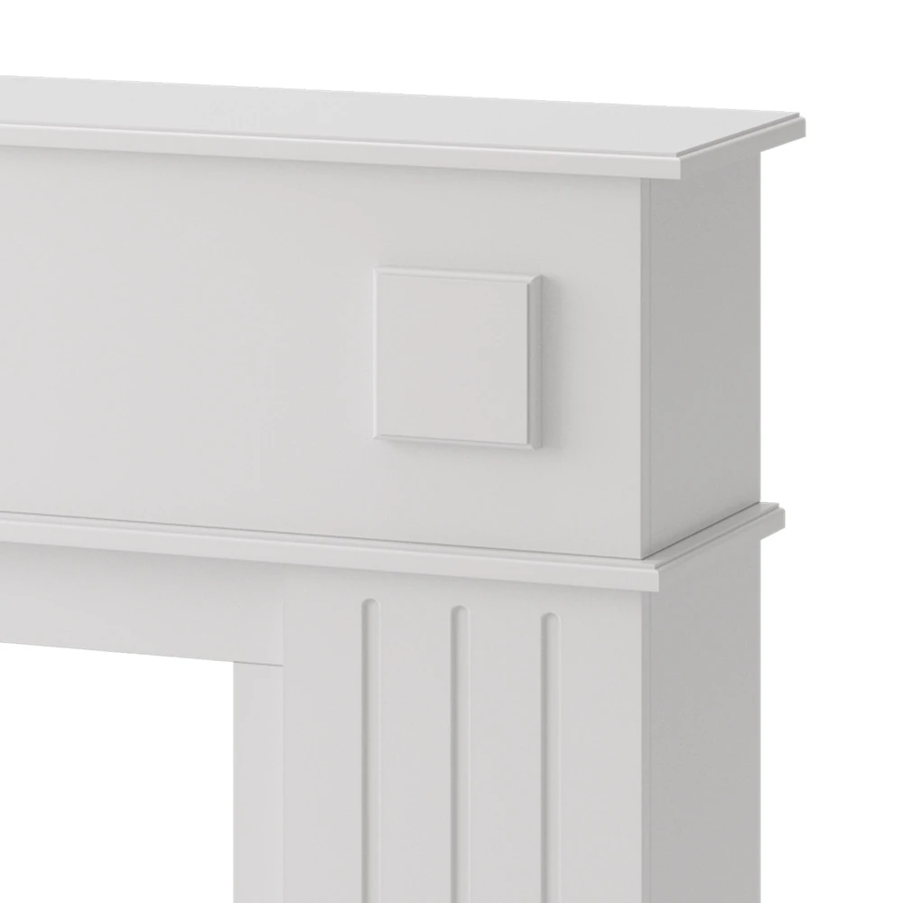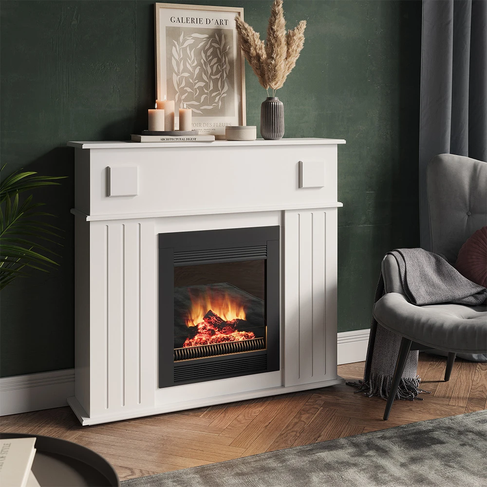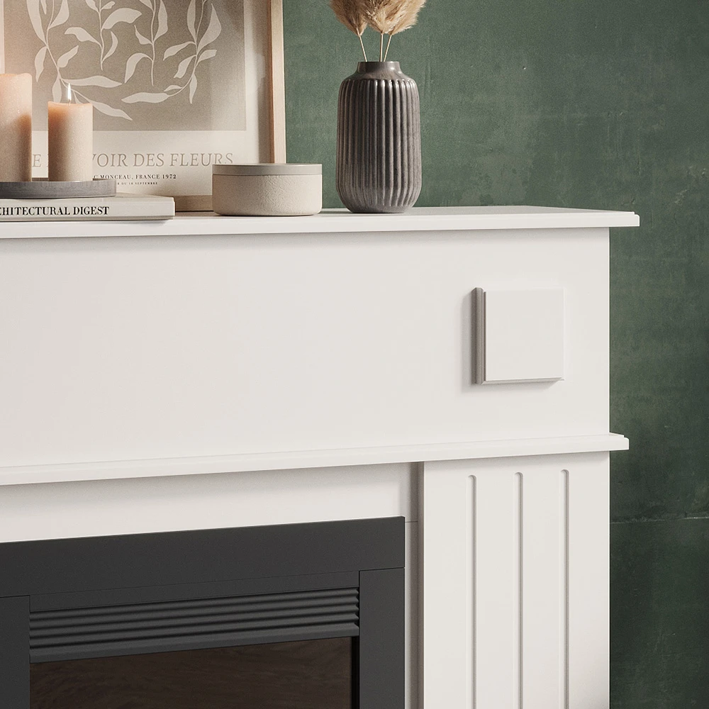 - Mit Kaminsims in Weiß zaubert das MDF-Modell eine stilvolle Atmosphäre. Dank seiner platzsparenden Eigenschaften wird es zum Hingucker im Raum!