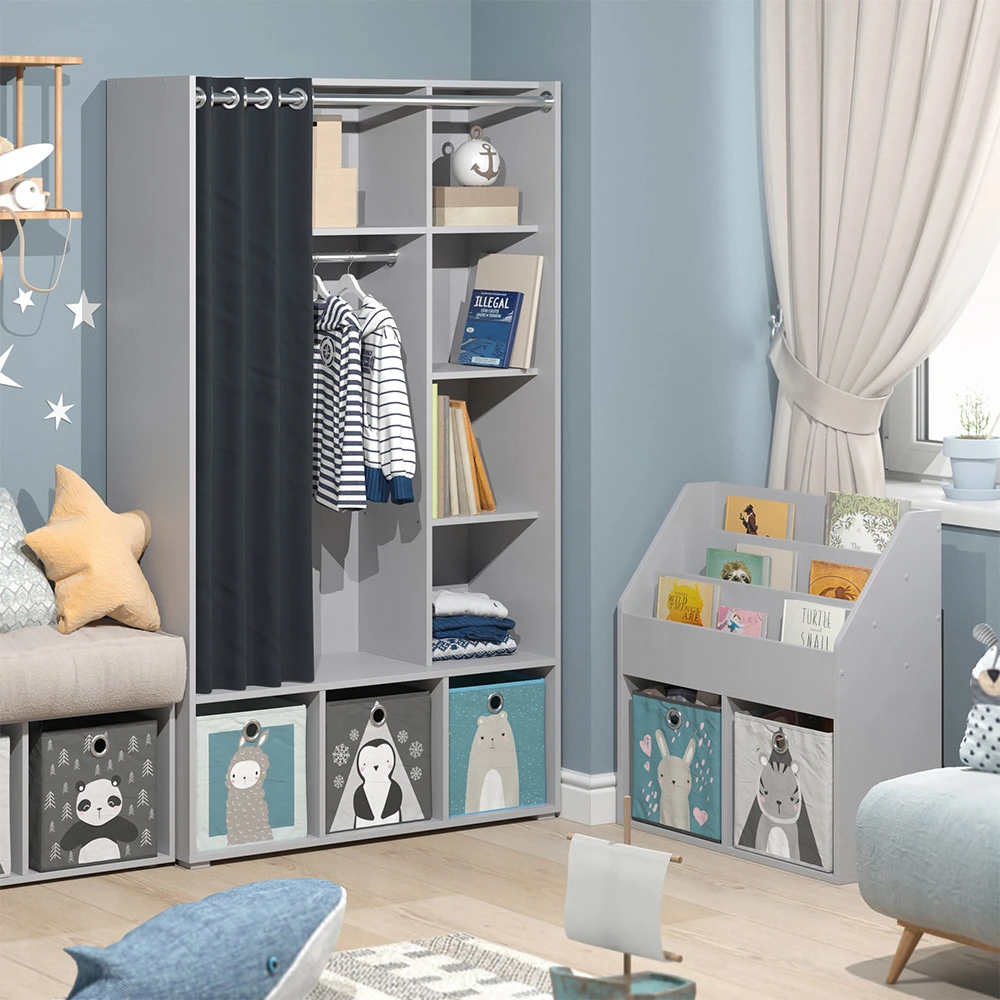 - Das Kinderregal bietet mit seinen 7 offenen Ablagen und dem Garderobenständer reichlich Stauraum für Spielzeug, Bücher und Kleidung.