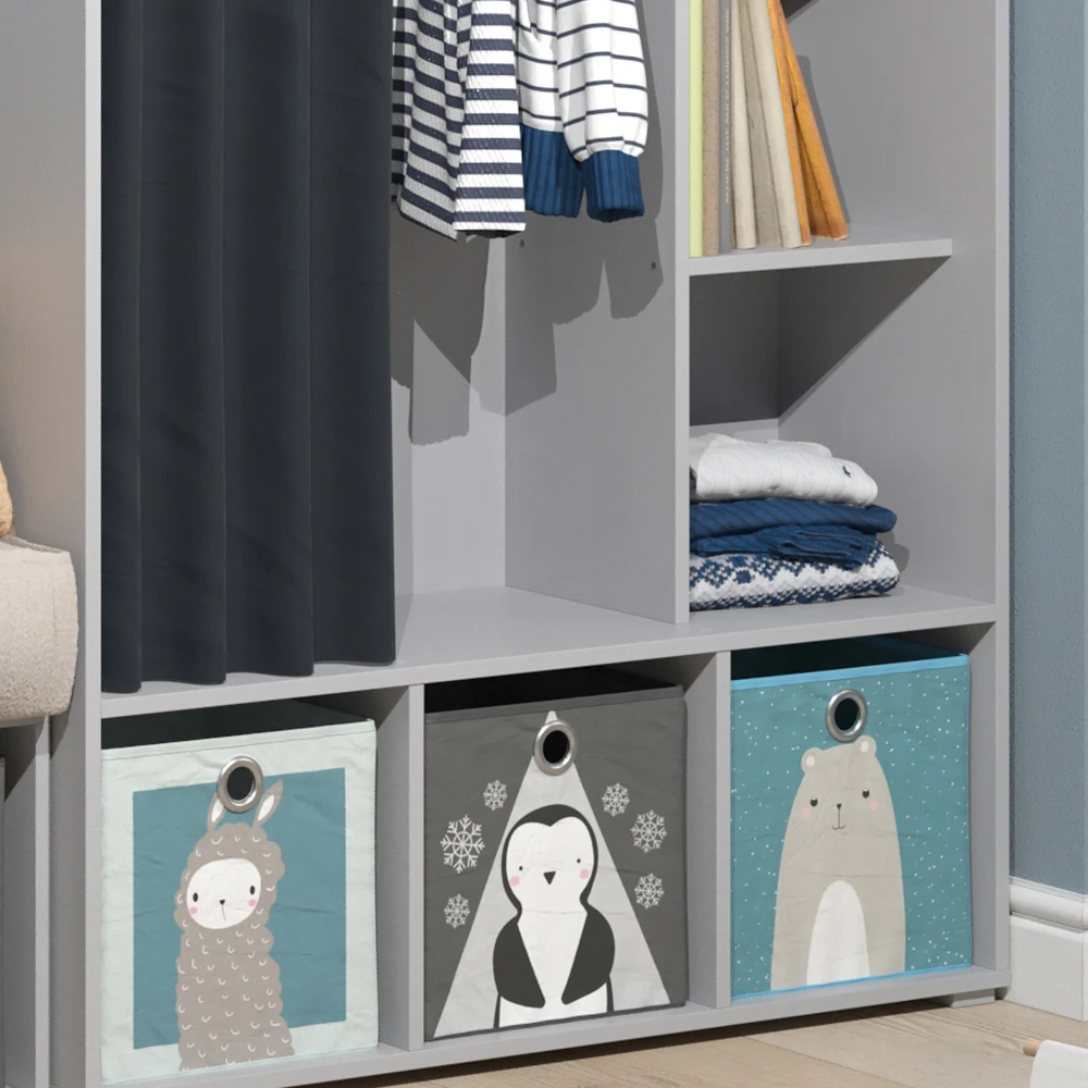 Der Kinderkleiderschrank Luigi mit 4 Faltboxen ist ein absolutes Must-have für jedes Kinderzimmer. Die Möbelserie Luigi wurde speziell für Kinderzimmer entworfen und bietet eine Kombination aus Funktionalität und Design. Der Schrank verfügt über insgesamt 7 offene Fachböden und einen Garderobenständer, der reichlich Stauraum für Kleidung und Accessoires bietet. Das Beste daran ist, dass der Schrank mit anderen Artikeln der Kollektion Luigi kombiniert werden kann. So lässt sich das komplette Kinderzimmer im gleichen Stil gestalten. Die hochwertigen Materialien garantieren eine lange Lebensdauer und machen den Kleiderschrank zum absoluten Lieblingsstück im Kinderzimmer. Sorgen Sie dafür, dass Ihr Kind sein eigenes Reich hat und sich rundum wohlfühlt – mit dem Kinderkleiderschrank Luigi und den anderen Produkten der Möbelserie Luigi.