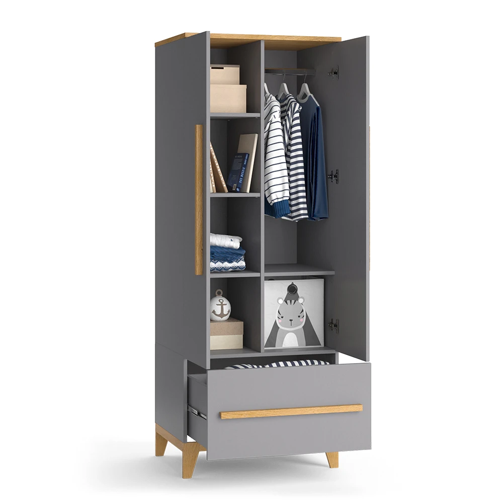 - MATERIAL: Der Kinderzimmerschrank besteht aus pflegeleichter Spanplatte 16 mm, mit einer Melaminharzbeschichtung.