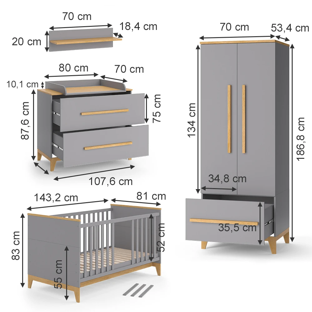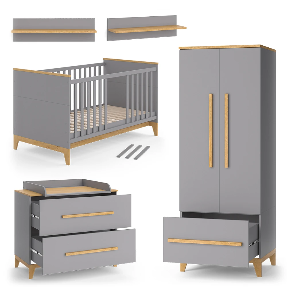 Kinderzimmer-Set „Malia“ Grau/Eiche 4er Set Vitalispa