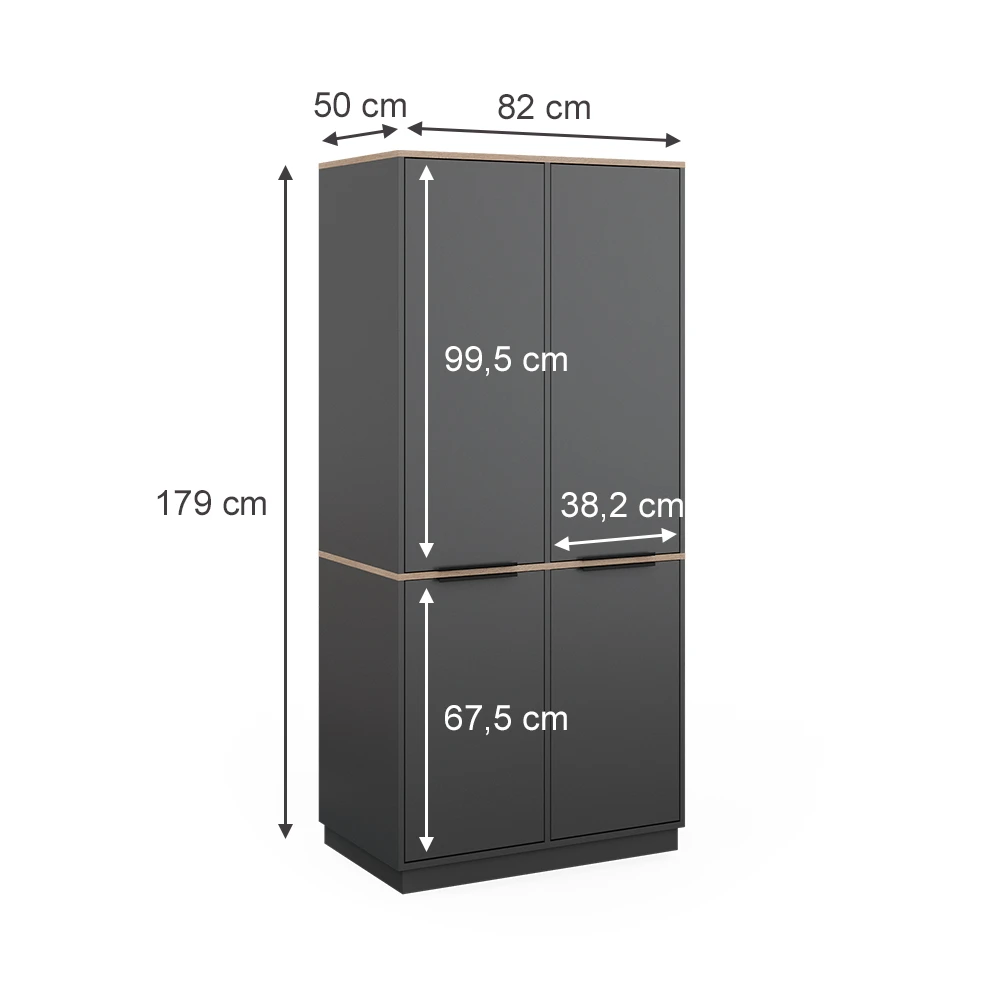 - MAßE: Der Mehrzweckschrank hat folgende Abmessungen: Breite: 82 cm, Höhe: 179 cm, Tiefe: 50 cm. Alle detaillierten Größen sind auf den Fotos angegeben.