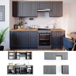 Vicco Küchenzeile „R-Line“, Schwarz Hochglanz/Anthrazit, 300 Cm Mit Hochschrank, Ohne Arbeitsplatte