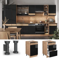 Küchenunterschrank „Fame-Line“ Schwarz-Eiche Hochglanz/Weiß 40 Cm Ohne Arbeitsplatte Vicco