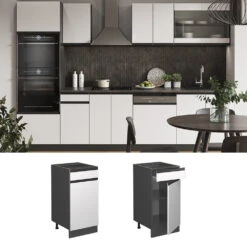 Küchenunterschrank „R-Line“ Weiß/Anthrazit 40 Cm J-Shape, Mit Schubladen, Ohne Arbeitsplatte Vicco