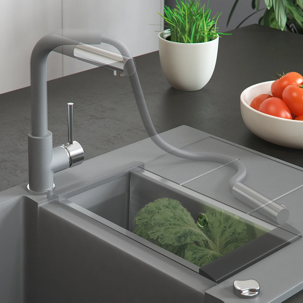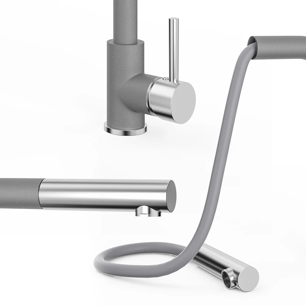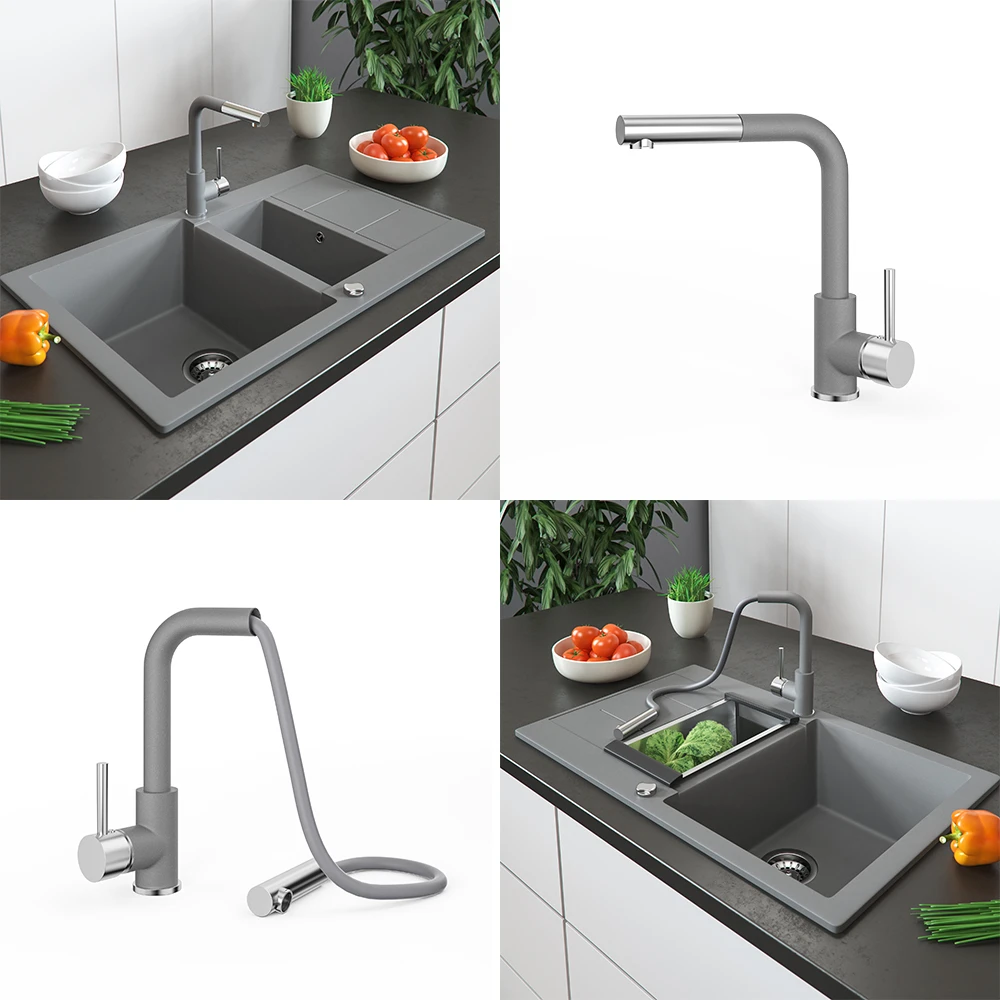 Die Küchenarmatur ist das Herzstück jeder Küche und sollte daher nicht nur funktional, sondern auch stilvoll sein. Unsere Spülearmatur ist eine perfekte Kombination aus Eleganz und Funktionalität. Der Wasserhahn ermöglicht es Ihnen, das Wasser schnell und einfach ein- und auszuschalten, während die Mischbatterie perfekt austariert ist, um die ideale Wassertemperatur zu erreichen. Das Ausziehen der Brause ermöglicht es Ihnen, auch schwer erreichbare Stellen zu reinigen, während der Luftsprudler dabei hilft, Wasser zu sparen. Das kratzfeste Messinggehäuse garantiert Langlebigkeit, auch bei täglichem Gebrauch, während die kerox-Keramikkartusche Leckagen verhindert. Und das Beste ist: Unsere Küchenarmatur wird in der EU hergestellt, um höchste Qualität zu gewährleisten. Egal ob Sie ein begeisterter Koch sind oder nur eine schnelle Tasse Tee machen möchten, unsere Küchenarmatur ist das perfekte Werkzeug für Ihre Küche. Investieren Sie in Qualität und Stil – und lassen Sie unsere Küchenarmatur das Highlight Ihrer Küche sein.