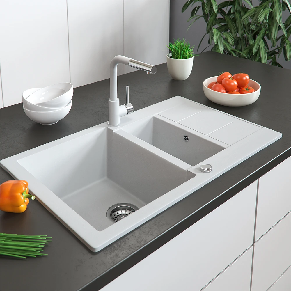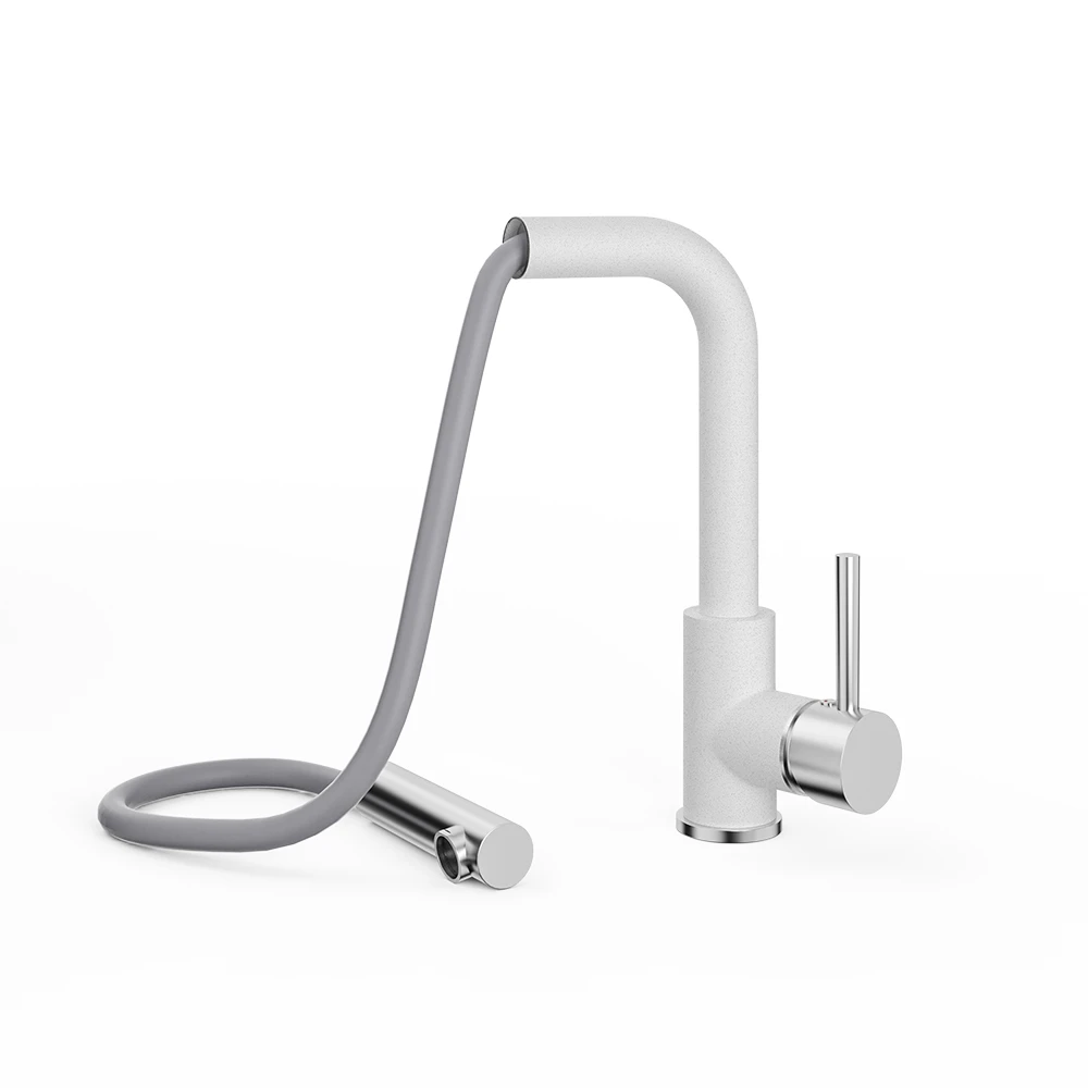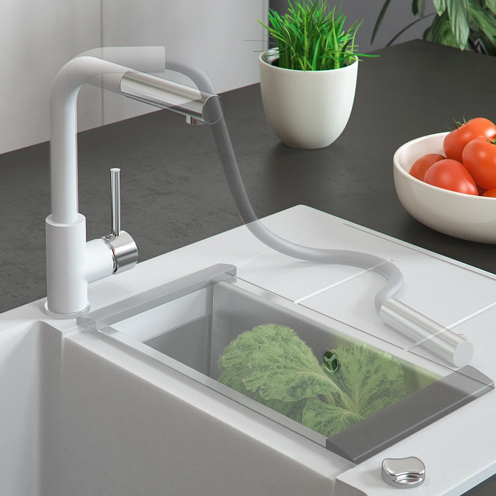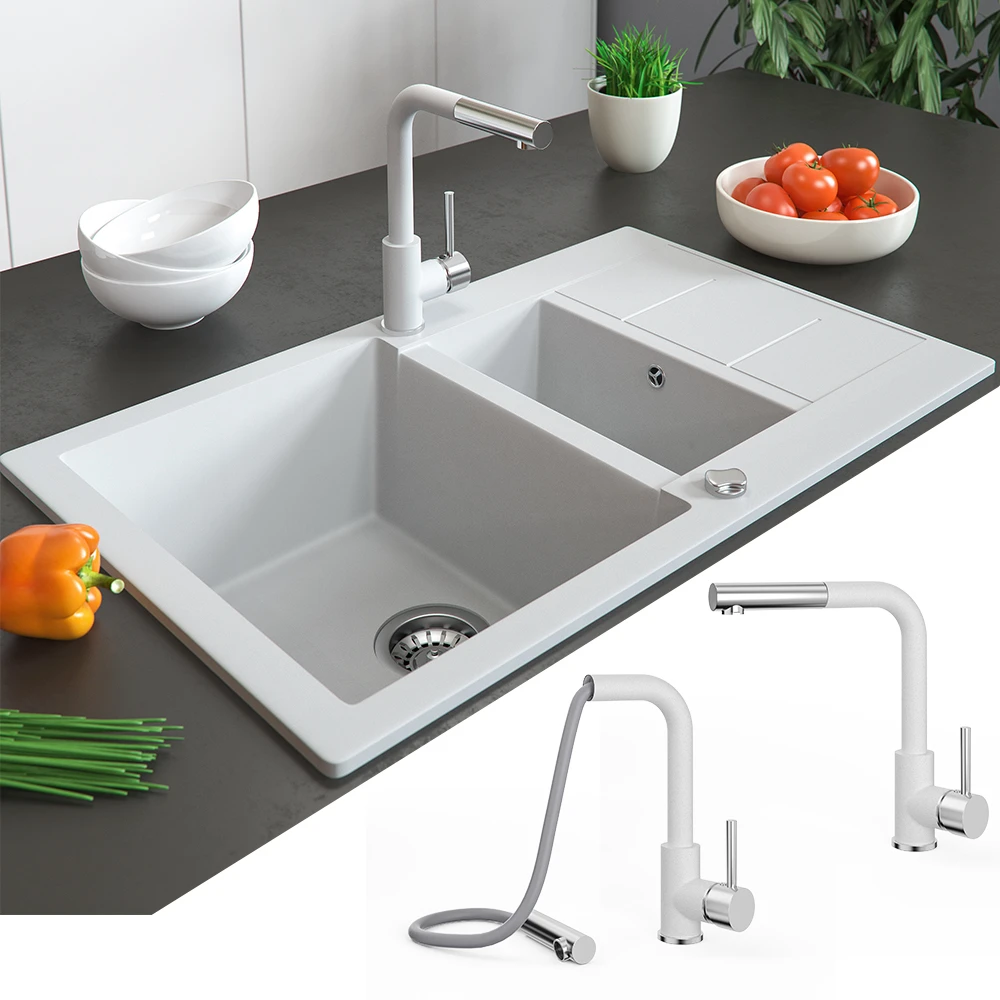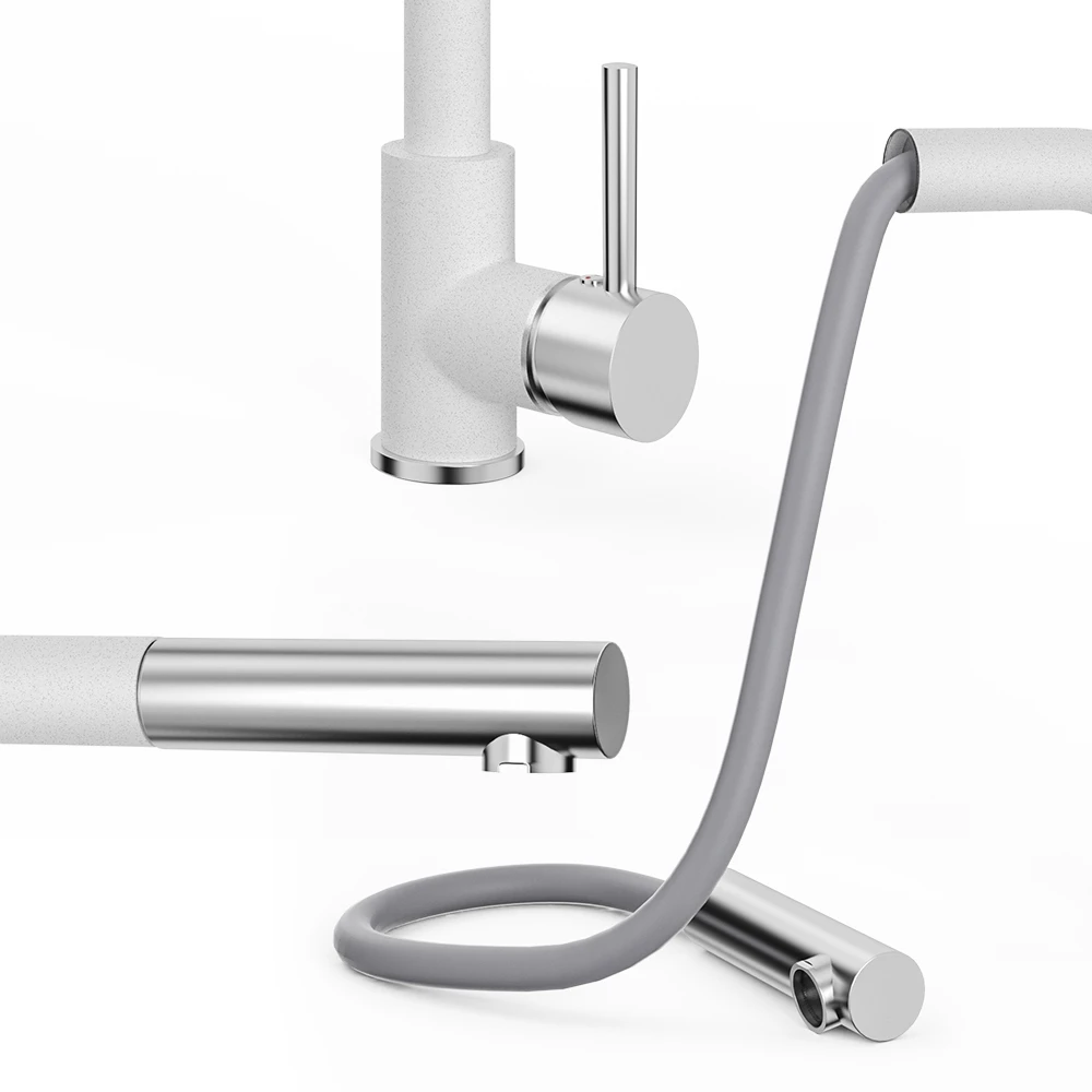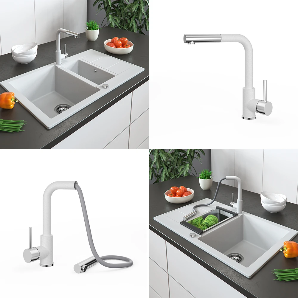 Die Küchenarmatur ist das Herzstück jeder Küche und sollte daher nicht nur funktional, sondern auch stilvoll sein. Unsere Spülearmatur ist eine perfekte Kombination aus Eleganz und Funktionalität. Der Wasserhahn ermöglicht es Ihnen, das Wasser schnell und einfach ein- und auszuschalten, während die Mischbatterie perfekt austariert ist, um die ideale Wassertemperatur zu erreichen. Das Ausziehen der Brause ermöglicht es Ihnen, auch schwer erreichbare Stellen zu reinigen, während der Luftsprudler dabei hilft, Wasser zu sparen. Das kratzfeste Messinggehäuse garantiert Langlebigkeit, auch bei täglichem Gebrauch, während die kerox-Keramikkartusche Leckagen verhindert. Und das Beste ist: Unsere Küchenarmatur wird in der EU hergestellt, um höchste Qualität zu gewährleisten. Egal ob Sie ein begeisterter Koch sind oder nur eine schnelle Tasse Tee machen möchten, unsere Küchenarmatur ist das perfekte Werkzeug für Ihre Küche. Investieren Sie in Qualität und Stil – und lassen Sie unsere Küchenarmatur das Highlight Ihrer Küche sein.