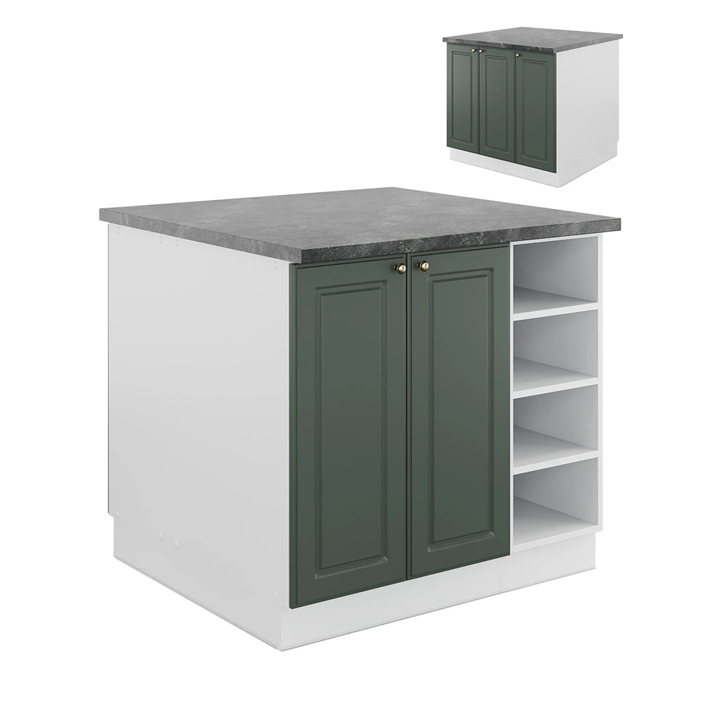- MAßE: Der Insel-Küchenschrank hat eine Breite von 90 cm, eine Höhe von 82 cm und eine Tiefe von 81,6 cm. Alle detaillierten Größen sind auf den Fotos angegeben.