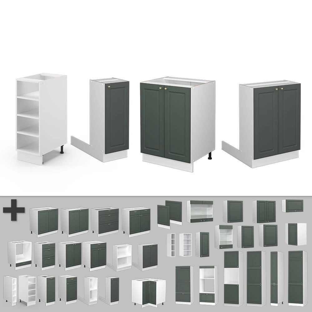 - MATERIAL: Die freistehenden Küchenmöbel besteht aus pflegeleichter Spanplatte 16 mm, mit einer Melaminharzbeschichtung. Alle Fronten der Kücheneinheiten sind aus hochwertigem MDF hergestellt.