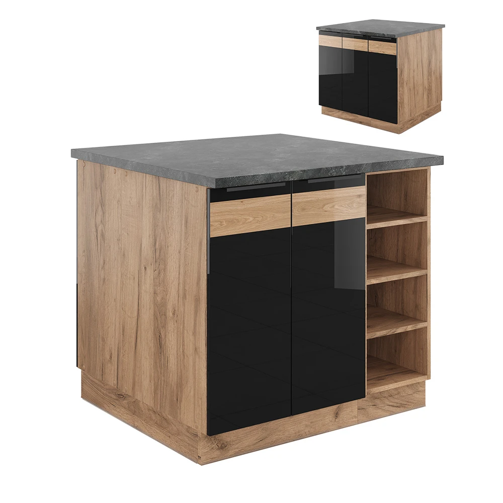 Mit der Fame-Line Kücheninsel setzen Sie ein Statement in Ihrer Küche. Der freistehende Küchenschrank bietet ausreichend Stauraum für alle Utensilien, die Sie zum Kochen benötigen, und macht Ihre Kochinsel zum Blickfang in jedem Raum. Die MDF-Fronten und Soft-Close-Scharniere sorgen dabei für eine hochwertige Optik und ein angenehmes Handling. Dabei ist die Konfiguration der Fame-Line Kücheninsel ganz nach Ihrem Geschmack anpassbar und lässt sich immer wieder neu zusammensetzen. Mit zusätzlichen Modulen können Sie Ihrer Kochinsel noch mehr Funktionen hinzufügen und Ihre Küche so zu einem Ort machen, an dem das Kochen zum Vergnügen wird.