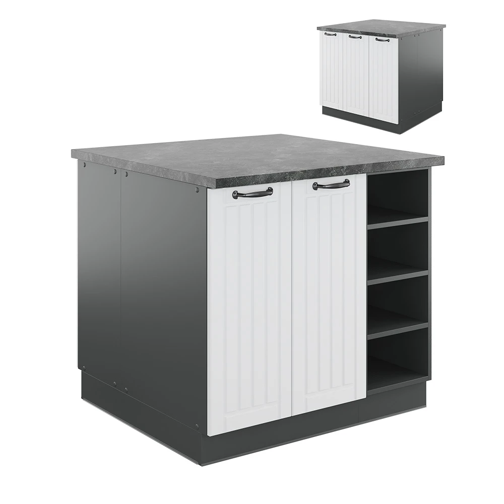 LIEFERUMFANG: Kücheninsel (Sofern nicht anders angegeben, gehören die Arbeitsplatten, Elektrogeräte und Dekoration nicht zum Lieferumfang), Montageanleitung, Montagematerial